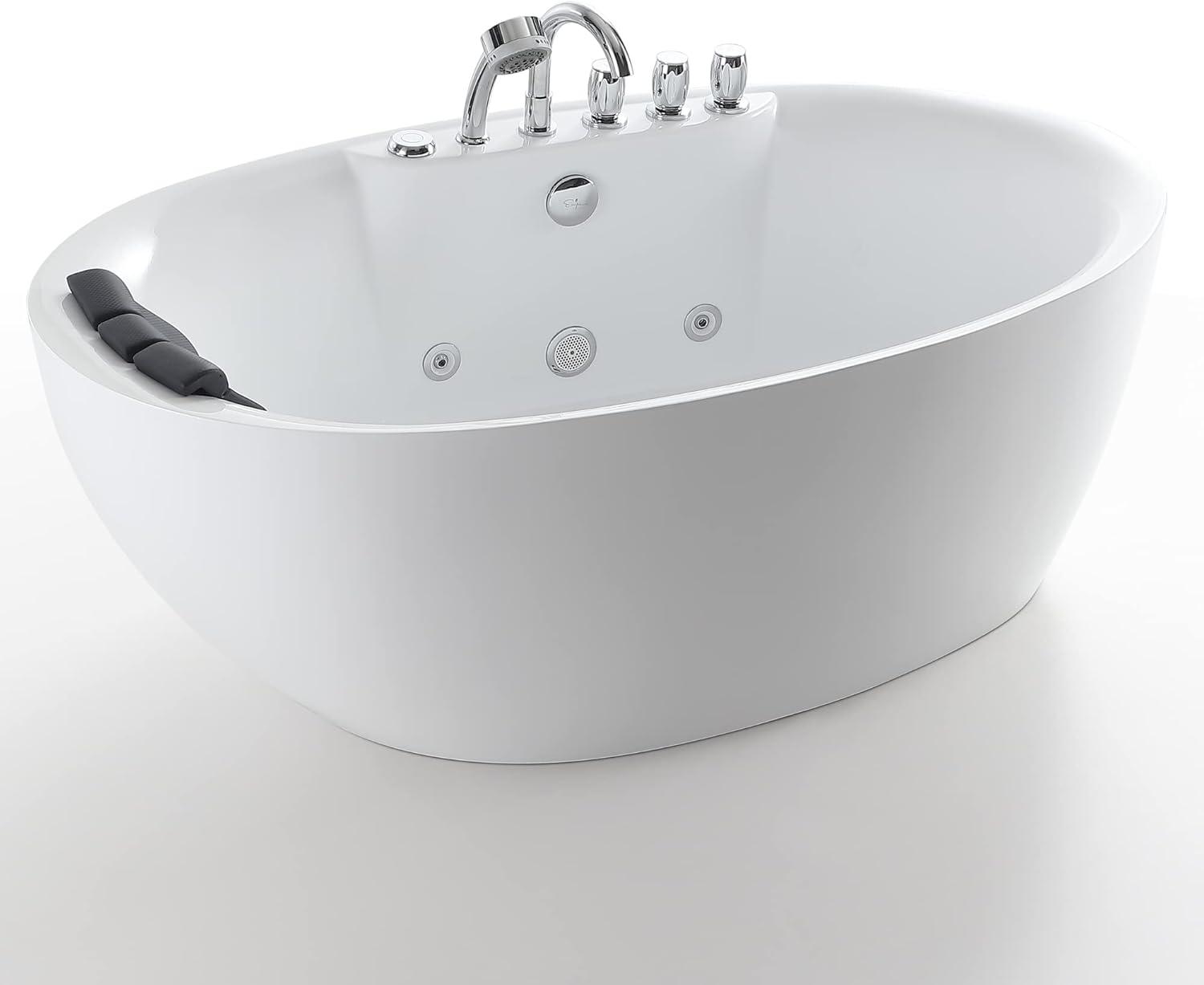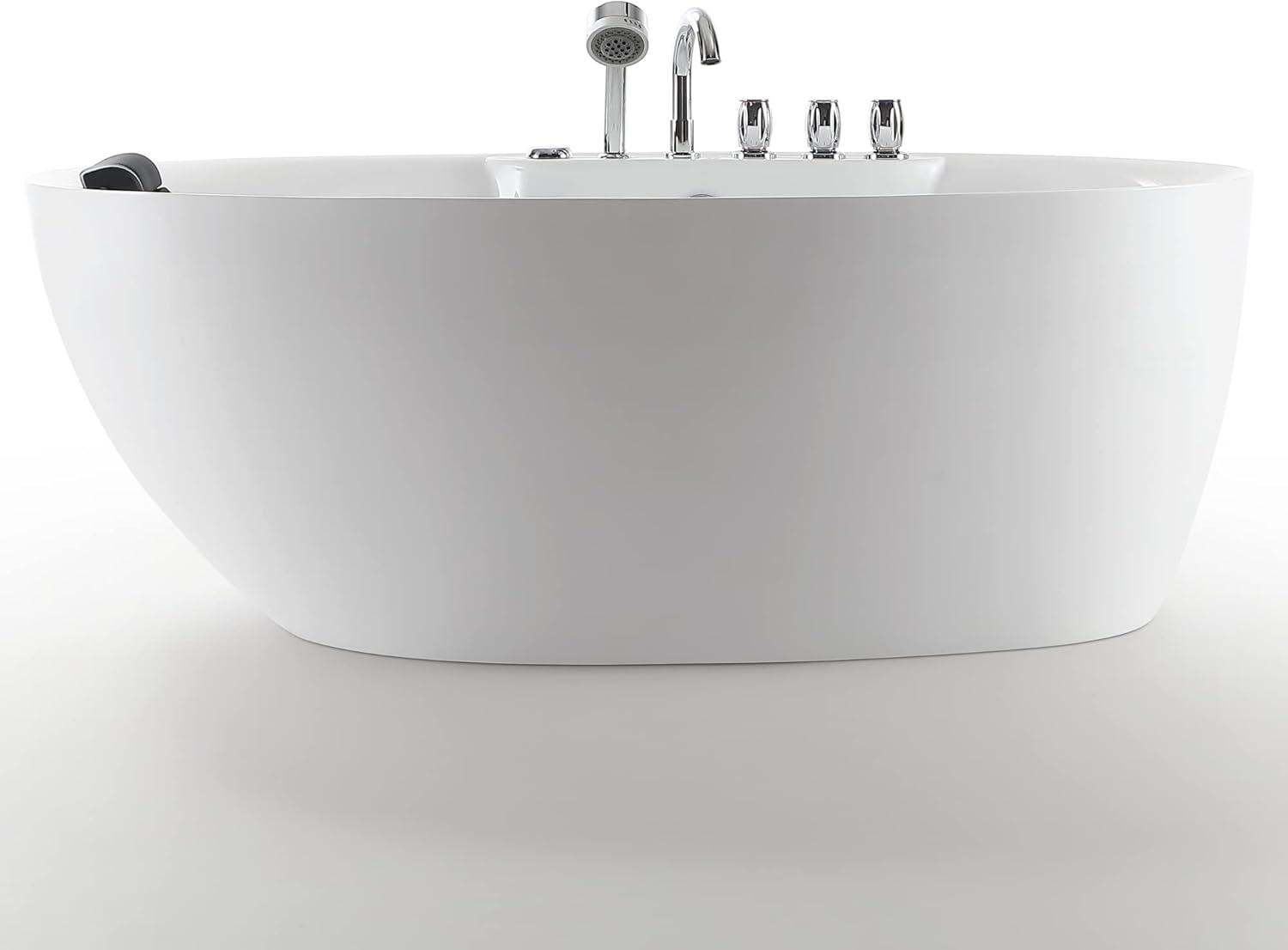 [PREMIUM QUALITY] The acrylic whirlpool tub features acrylic reinforced with fiberglass for long-lasting durability and a contemporary stand-alone design that complements any bathroom décor.Environmentally friendly material, non-toxic, non-cracking, high gloss, and durable finish. Easy to clean, and resistant to a wide range of household chemicals and cosmetic products.