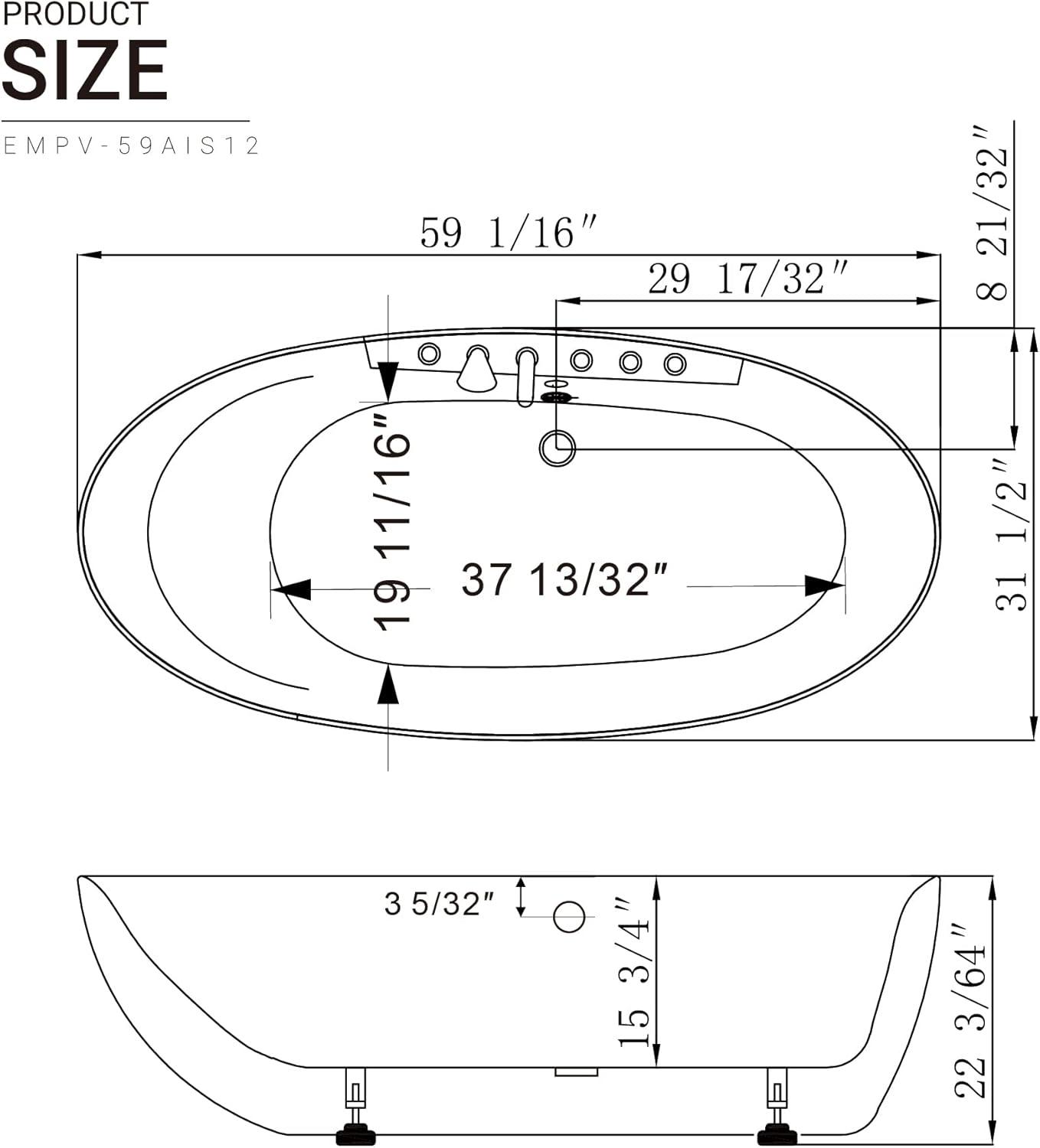 [A PERFECT BATHING EXPERIENCE]: With 59-inch length and 12.59-inch soaking depth the sloped lumbar support offers extra comfort while bathing. Our round overflow provides a clean and minimalist design that allows for a deep soak.