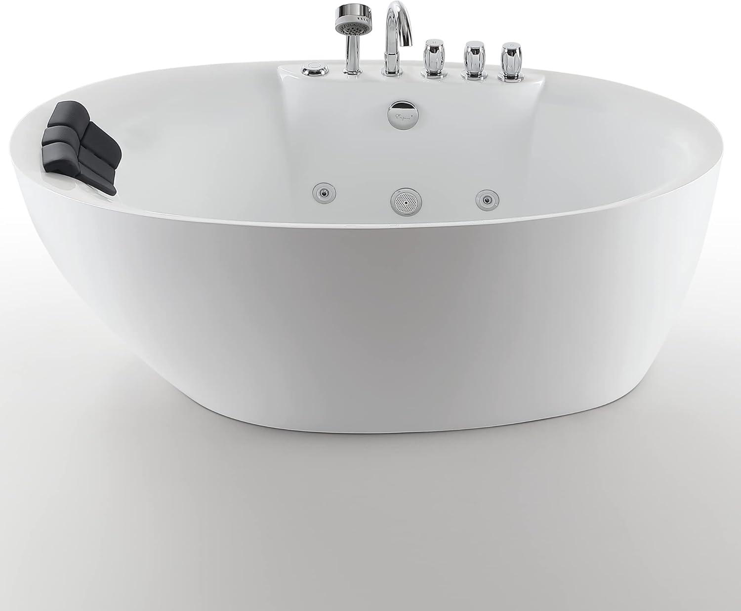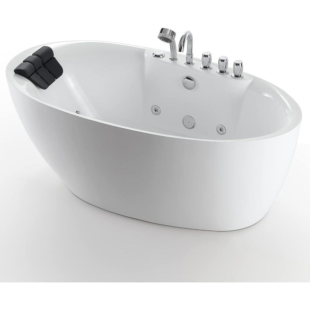 With 7 adjustable water jets, the Whirlpool Bathtub Massage Whirlpool Bathtub delivers a relaxing and rejuvenating hydromassage specifically targeted to your lumbar, legs and feet to promote blood circulation and to the back for total body relaxation. Lay back and relax as the Whirlpool Bathtub provides deep immersion allowing you to cover your entire body in water for a more relaxing experience, the black headrest provides a comfortable place to rest your head. The ergonomic control knobs allow you to effortlessly control your new whirlpool bath. The Whirlpool Bathtub Freestanding tub allows for total immersion, affording the best conditions to fully appreciate the unparalleled whirlpool experience.