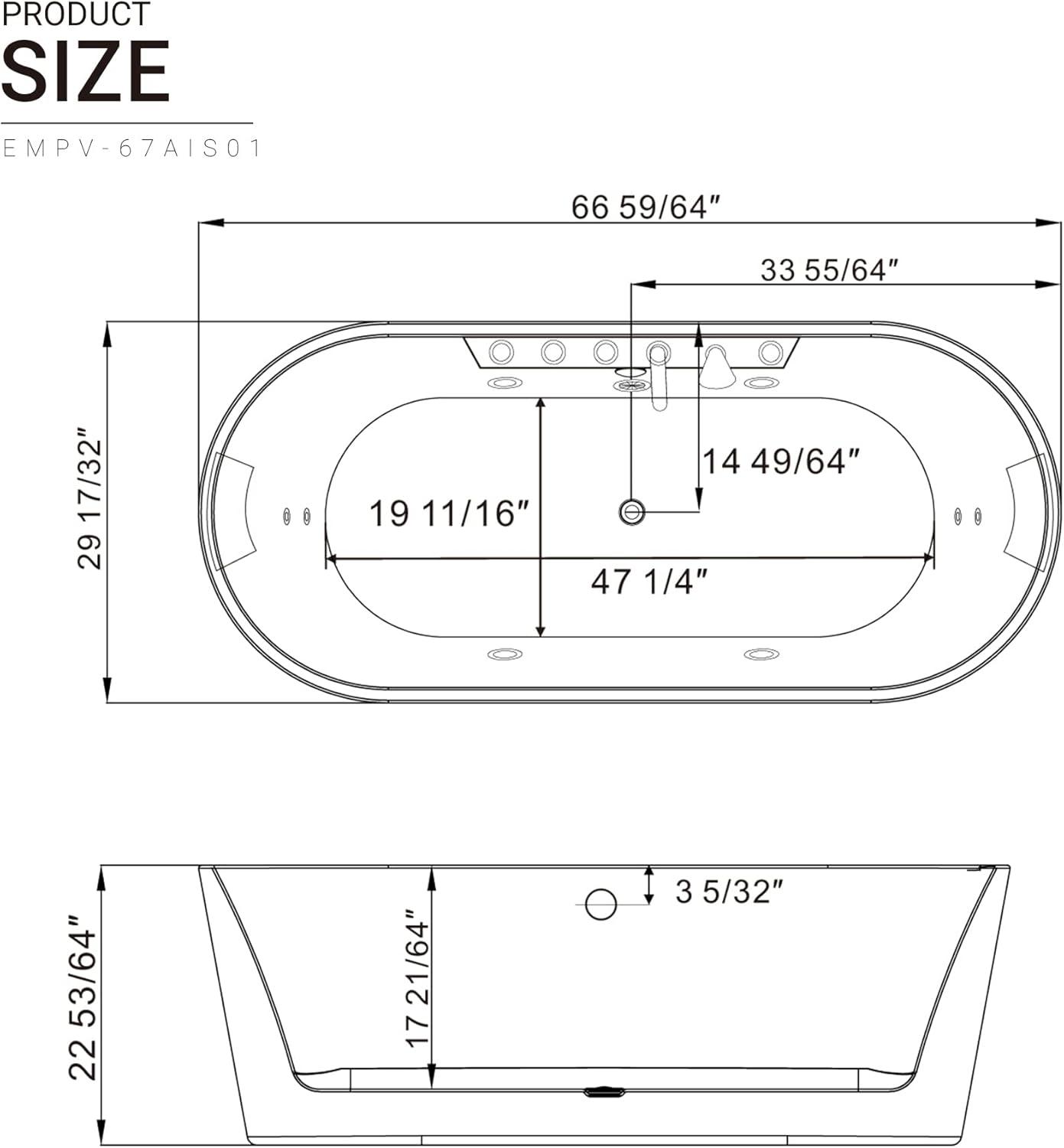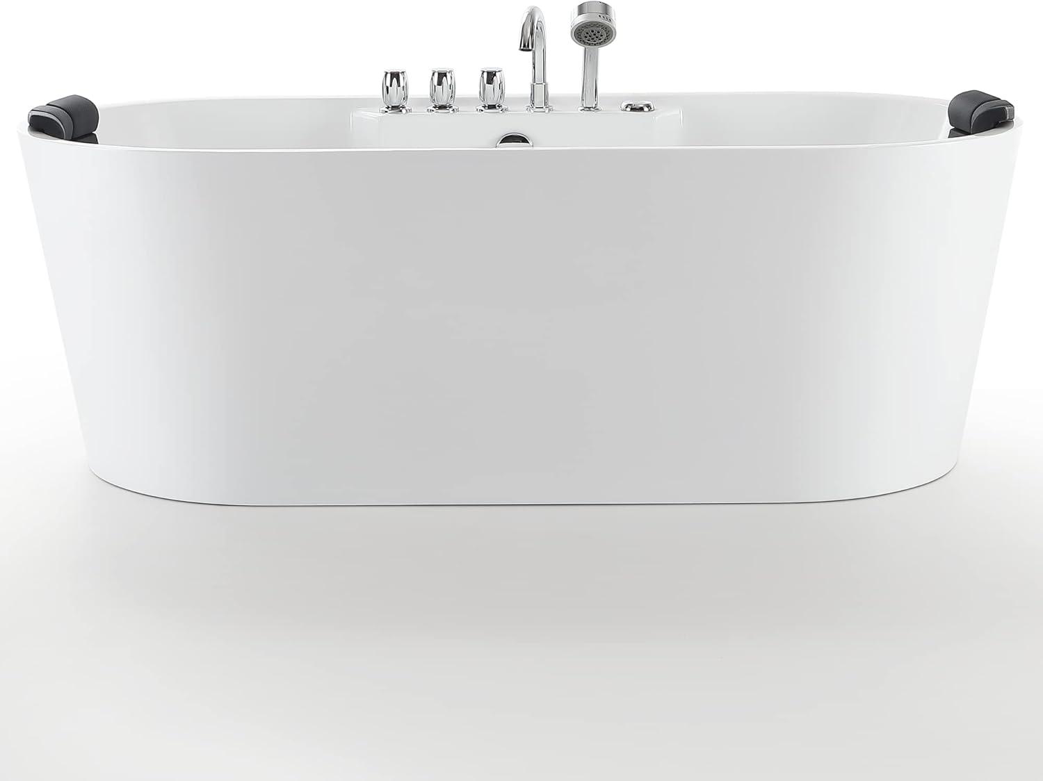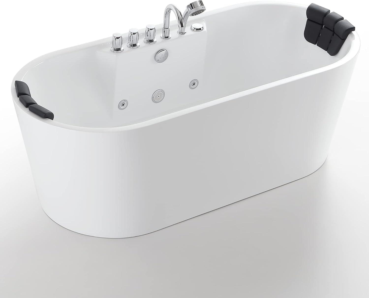 With 8 adjustable water jets, the Whirlpool Bathtub 67 in. Oval Massage Whirlpool Bathtub delivers a relaxing and rejuvenating hydromassage specifically targeted to your lumbar, legs and feet to promote blood circulation and to the back for total body relaxation. Lay back and relax as the Whirlpool Bathtub provides deep immersion allowing you to cover your entire body in water for a more relaxing experience, the black headrest provides a comfortable place to rest your head. The ergonomic control knobs allow you to effortlessly control your new whirlpool bath. The Whirlpool Bathtub Freestanding tub allows for total immersion, affording the best conditions to fully appreciate the unparalleled whirlpool experience.