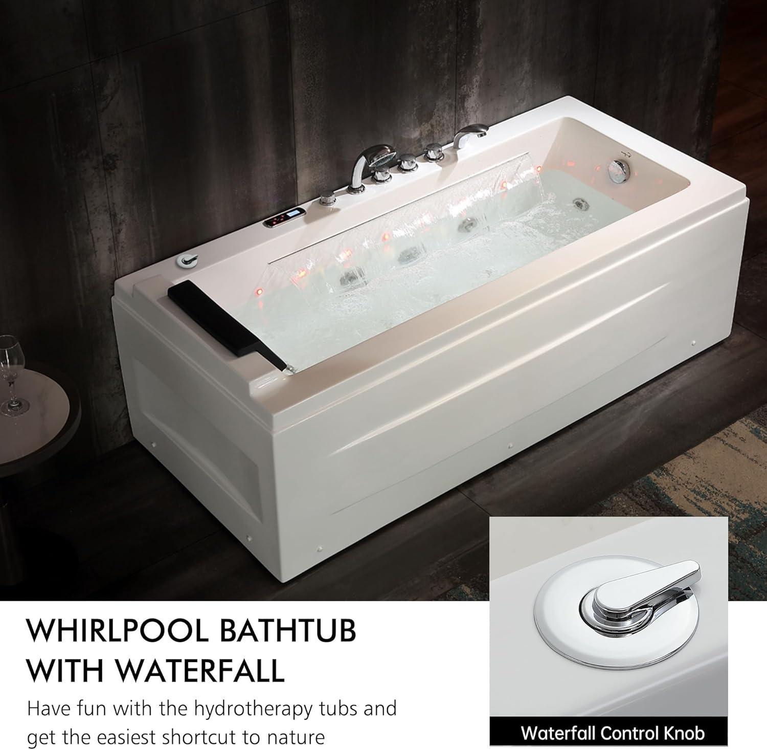 Jetted Bathtub with Waterfall: The 35″ long waterfall generates lots of negative ions which can greatly improve skin oxygen content, invite better sleep and make you look better.Get the easiest shortcut to nature and enjoy pure pleasure