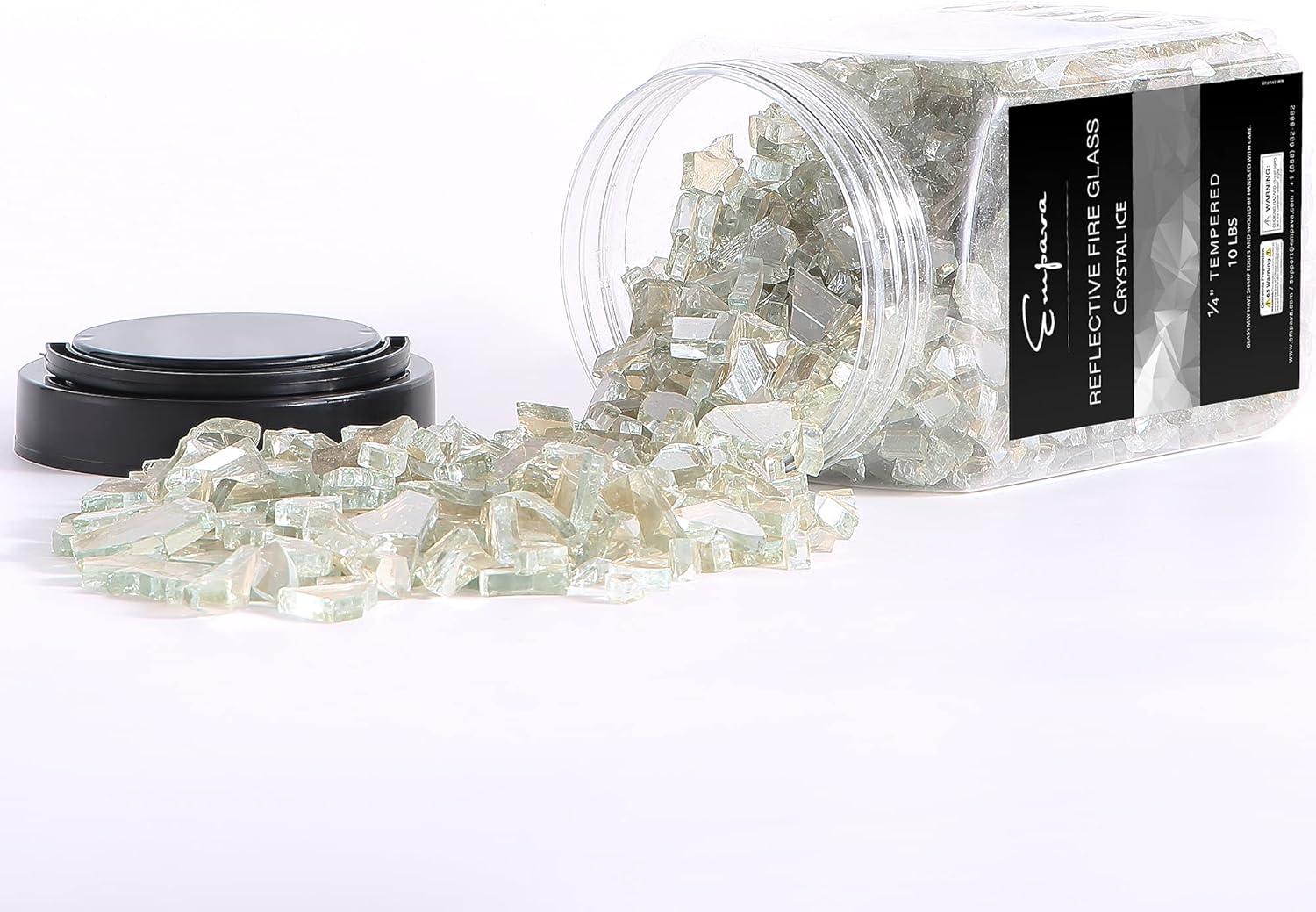 Empava 10 lbs. 1/4-in Reflective Tempered Fire Glass for Gas Fire Pit in Midnight Blue(Crystal Ice)
