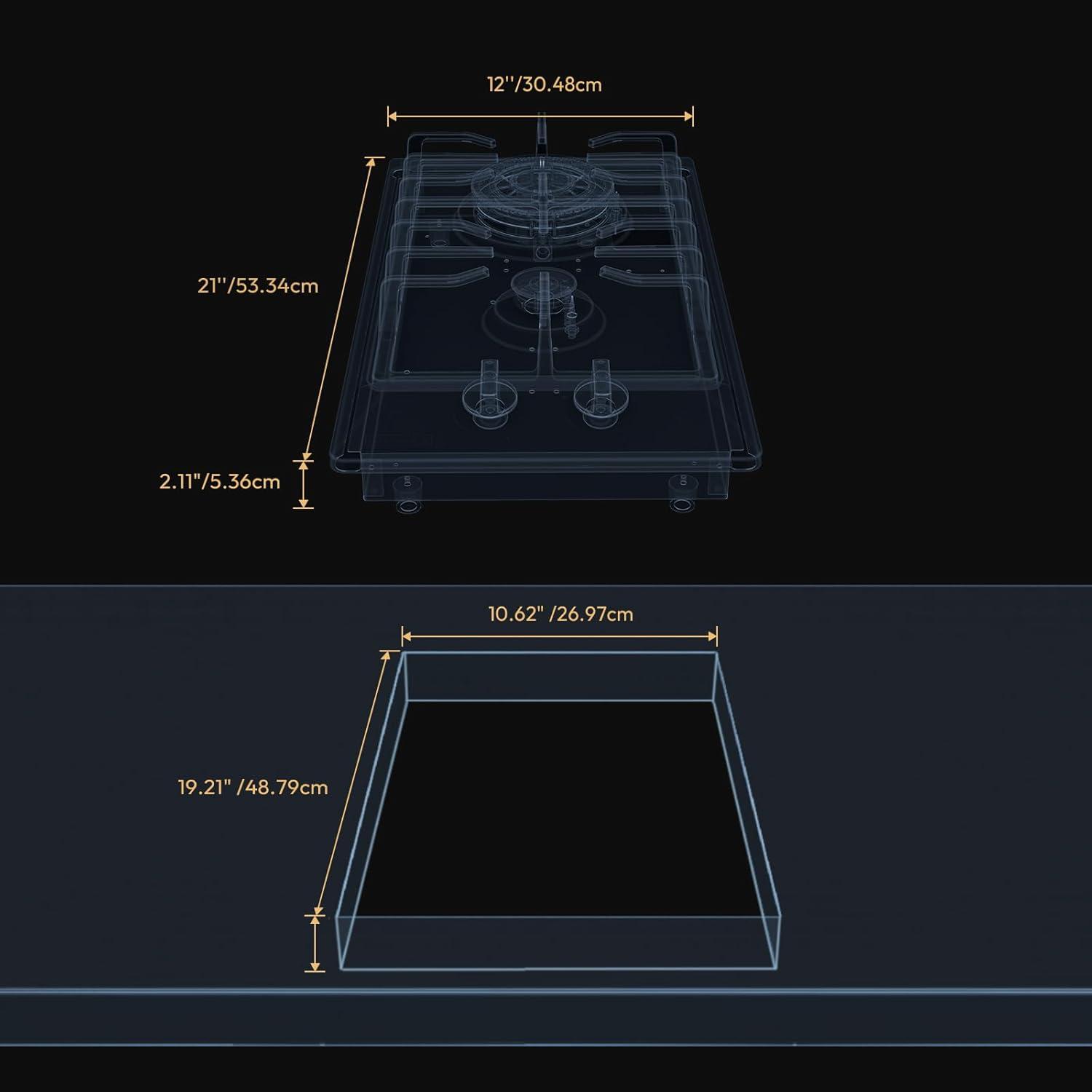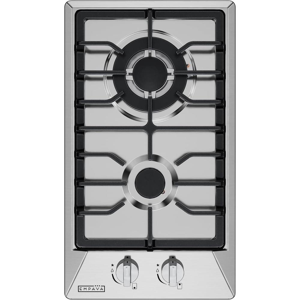 Empava 12 in. Gas Stove Cooktop 2 Italy Sabaf Sealed Burners NG/LPG Convertible in Stainless Steel, 12x21 Inch(12 Inch)