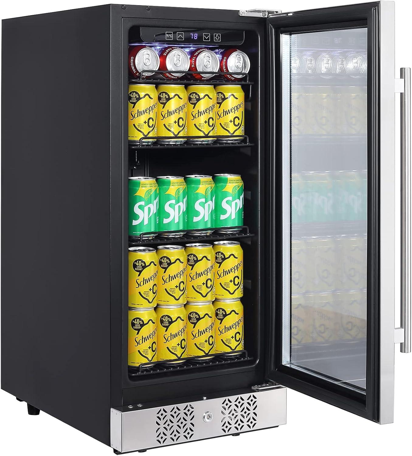 The Empava cooler is equipped with 6 adjustable and removable chrome shelves, which can hold 84 cans (12 oz.) of beverages. As for irregular shaped bottle, it is easy for you to store it by removing shelves. 3 cu. ft. capacity suitable for wine bottles, beer cans, soft drinks,water, snacks and much more!