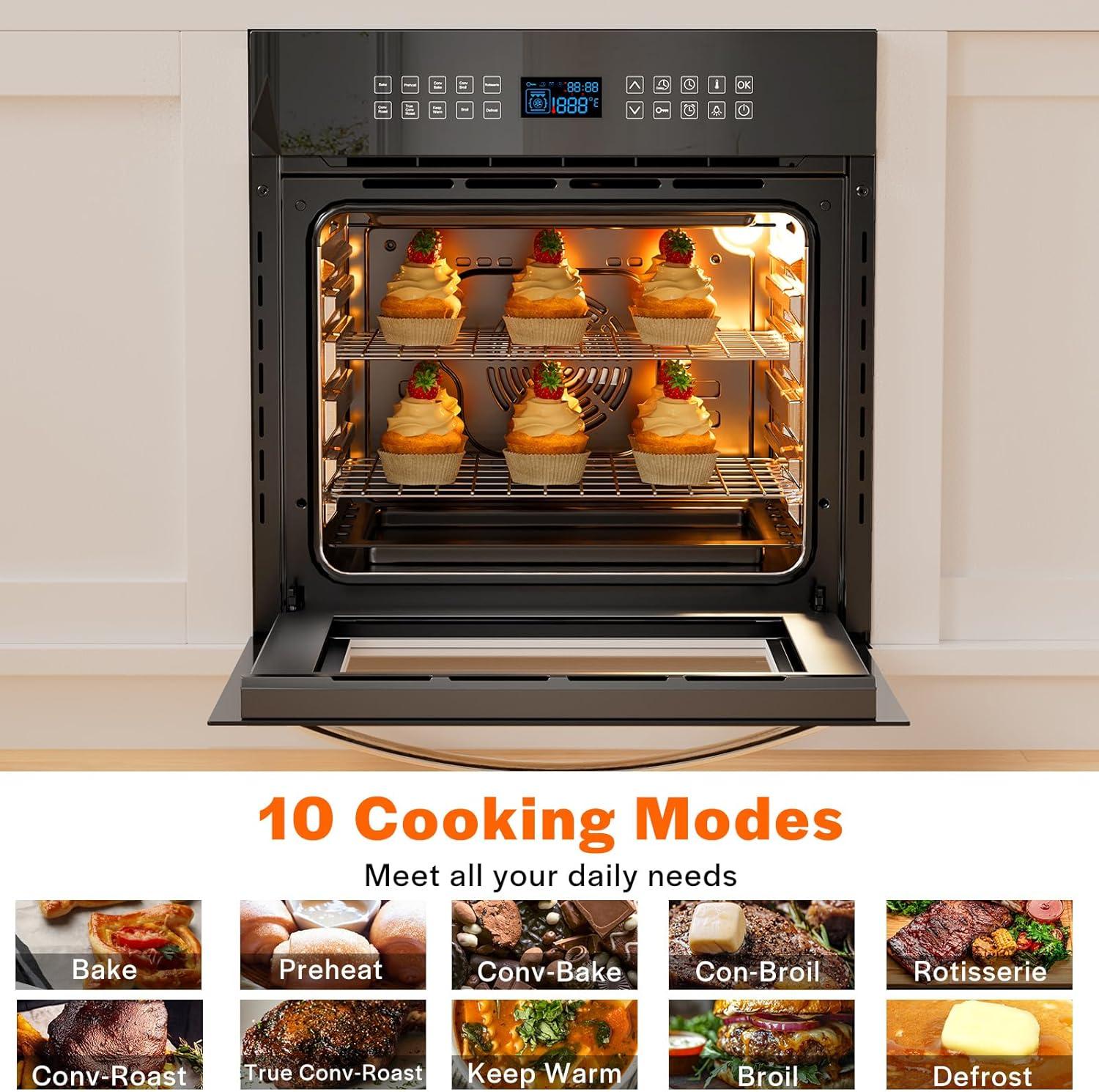 Ample Cooking Capacity: With a 2.3 cubic foot capacity and sturdy, heavy-duty racks, this single wall oven handles large meals with ease. The black ceramic interior and broil element provide a premium look and feel while letting you perfectly brown desserts and veggies.