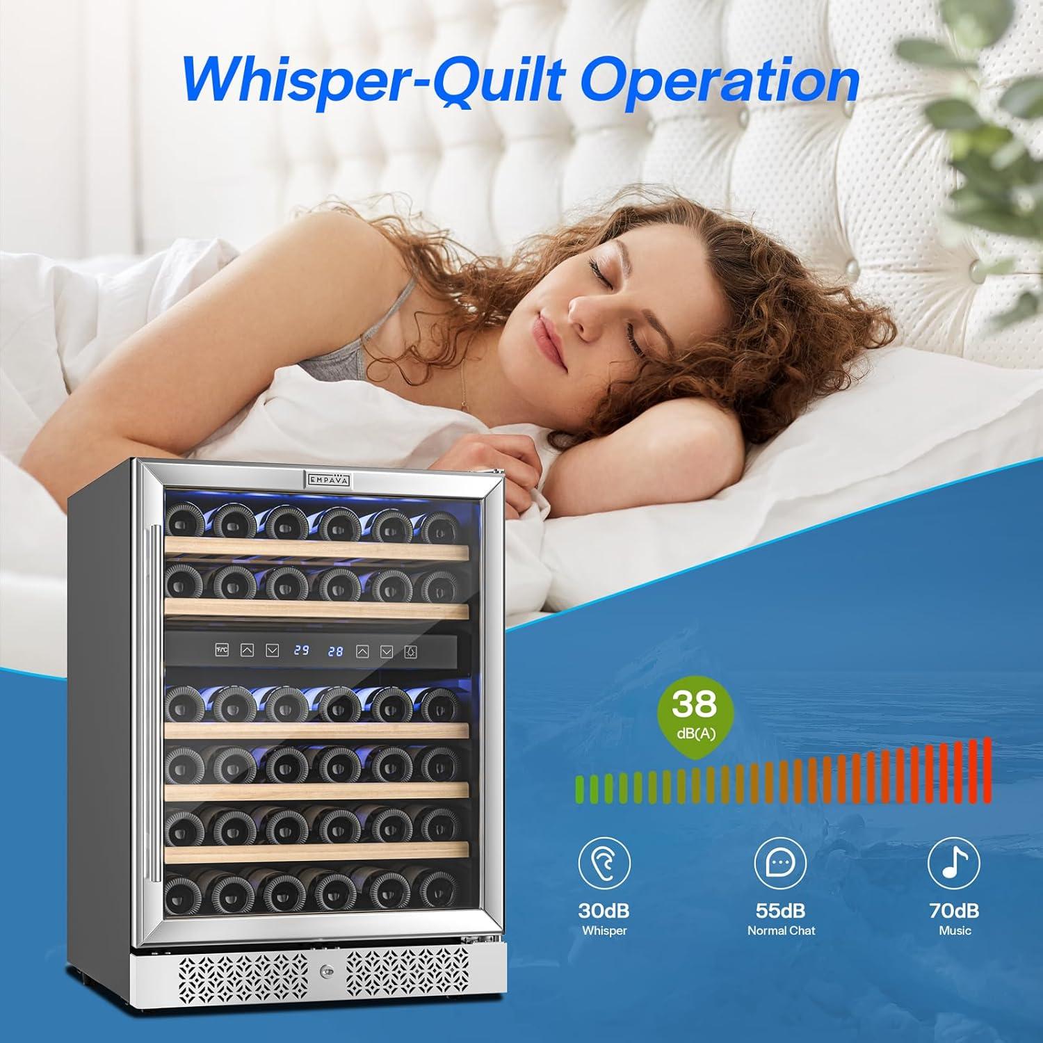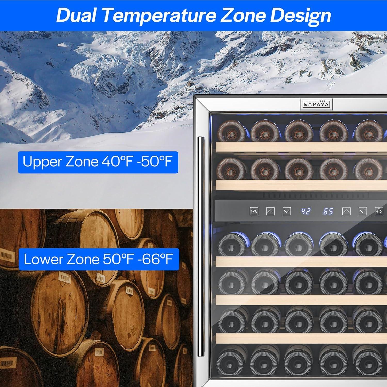 Empava 24 Inch Wine Fridge, 171 Bottle Wine Cooler Refrigerator with Professional Compressor, Large Capacity Fast Cooling Low Noise for Wine Enthusiasts, Built-in or Freestanding(46 Bottles Dual Zone)