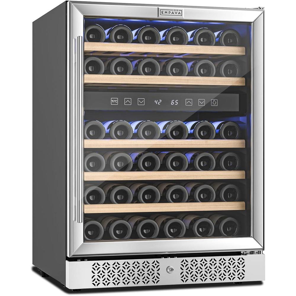 imageEmpava 24 Inch Wine Fridge 171 Bottle Wine Cooler Refrigerator with Professional Compressor Large Capacity Fast Cooling Low Noise for Wine Enthusiasts Builtin or Freestanding46 Bottles Dual Zone