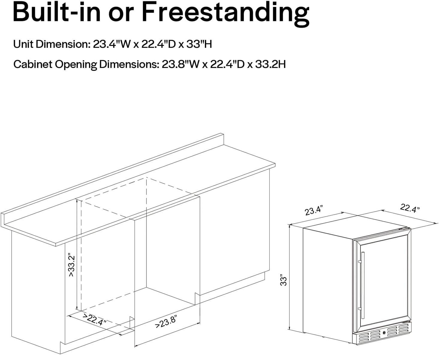 【ADVANCED COMPRESSOR & LOW NOISE】 This built-in wine cooler features an upgraded compressor with a unique vibration absorption system. The perfect temperature will keep the wine at its best. The system reduces the impact of vibration and noise, avoids artificially accelerated wine aging, and reduces excess acidity and impurities. The noise can be controlled below 38 decibels, providing a quiet environment for your house.