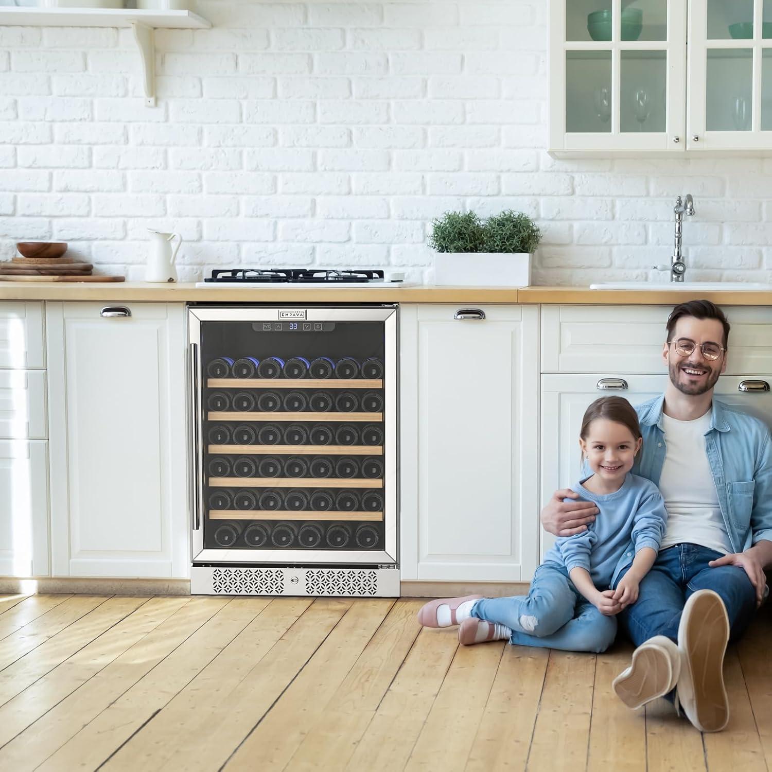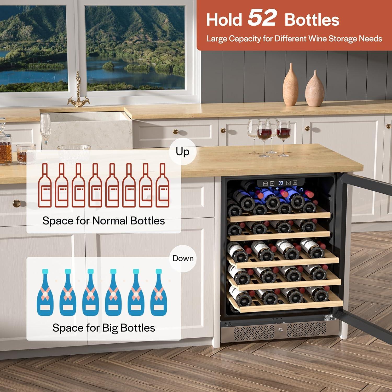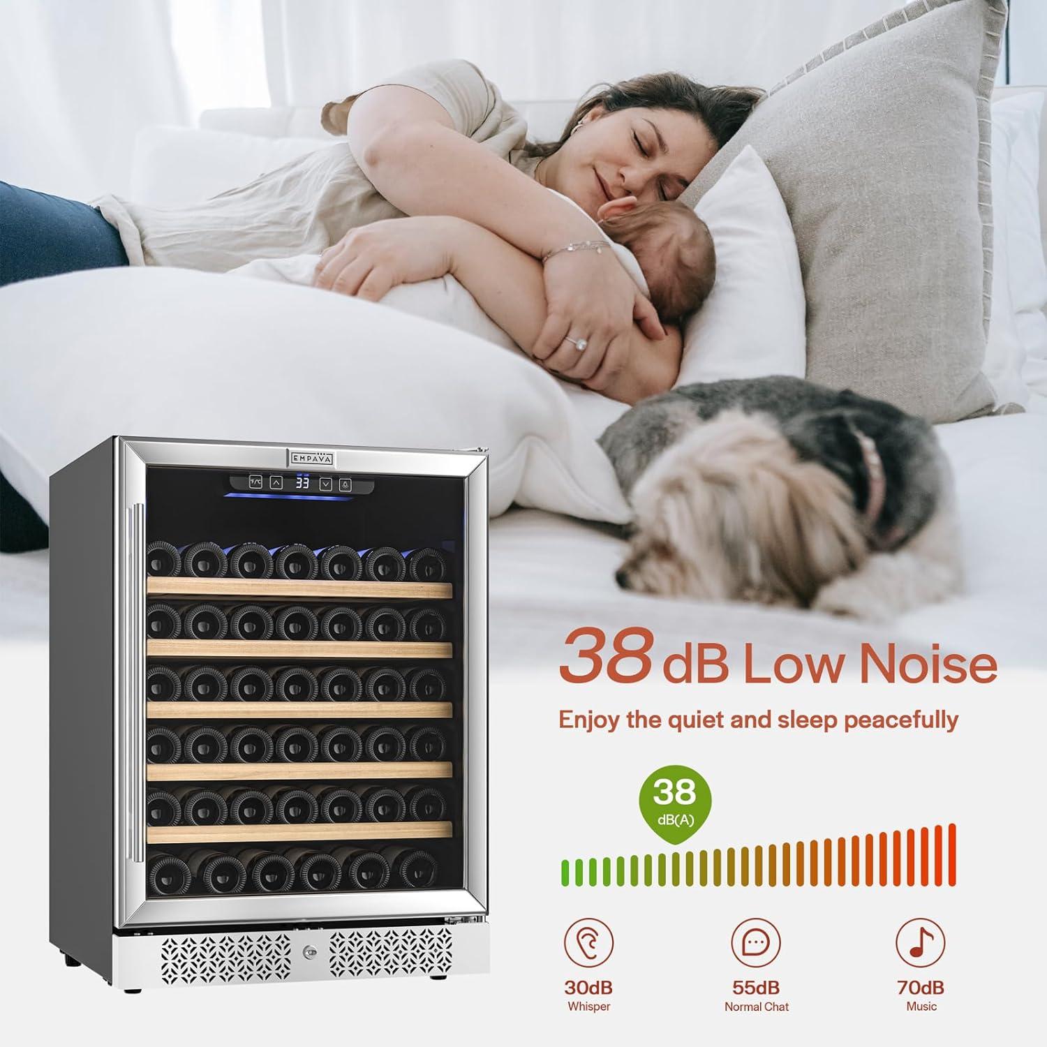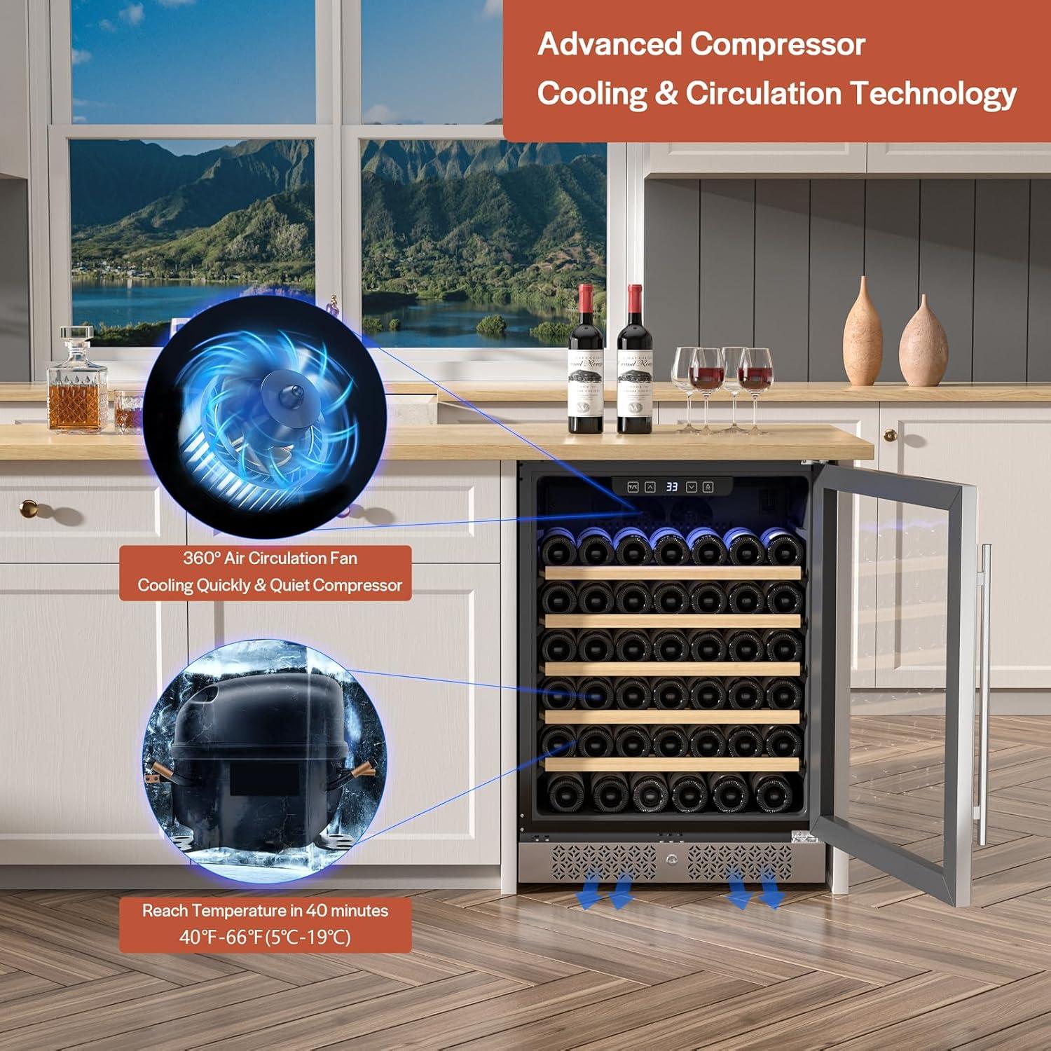 Empava 24 Inch Wine Fridge, 171 Bottle Wine Cooler Refrigerator with Professional Compressor, Large Capacity Fast Cooling Low Noise for Wine Enthusiasts, Built-in or Freestanding(52 Bottles Single Zone)