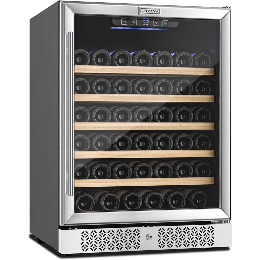 imageEmpava 24 Inch Wine Fridge 171 Bottle Wine Cooler Refrigerator with Professional Compressor Large Capacity Fast Cooling Low Noise for Wine Enthusiasts Builtin or Freestanding52 Bottles Single Zone