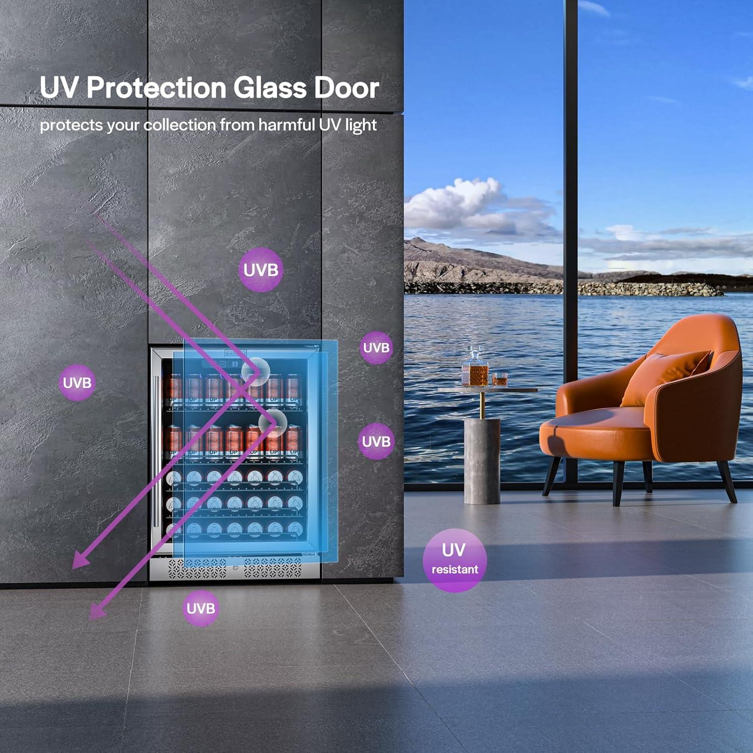 Energy-Efficient Lighting – Integrated LED lighting in this beverage cooler illuminates your collection without warming the interior, ensuring your drinks are easily visible and remain at the perfect temperature. This feature combines functionality with efficiency, making selecting your preferred beverage a breeze, even in low light.
