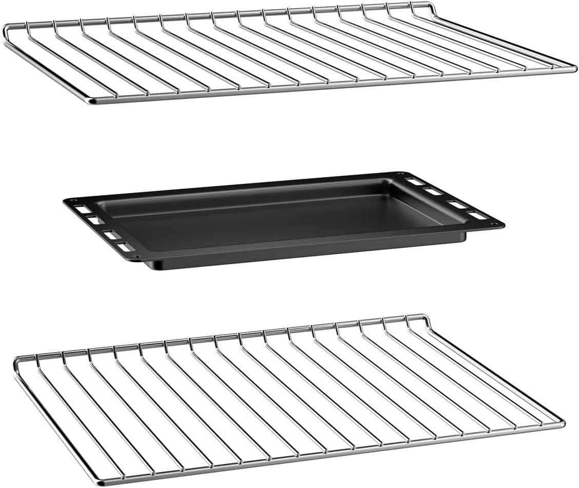 [6 RACK POSITION] Come with 6-layer shelf to place the grill grate and the baking tray, the large oven window and halogen lighting offers a clear and bright interior, minimizing the need to open the door to check progress, lets you easily view the status of your dish