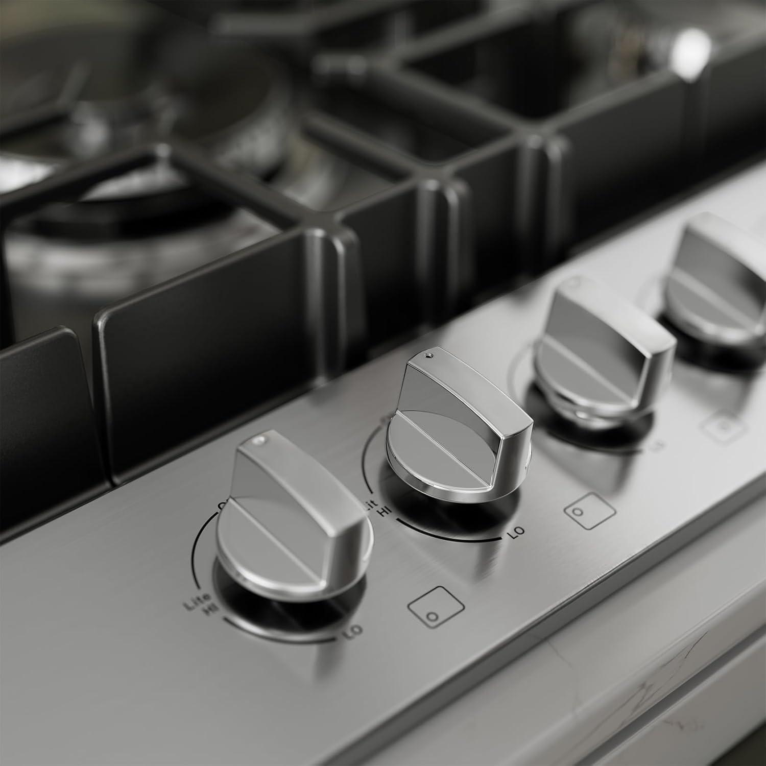 Durable, Dishwasher Safe Components – Full-width laser-cut cast iron grates and robust knobs are dishwasher safe, offering easy cleaning and a premium kitchen look.