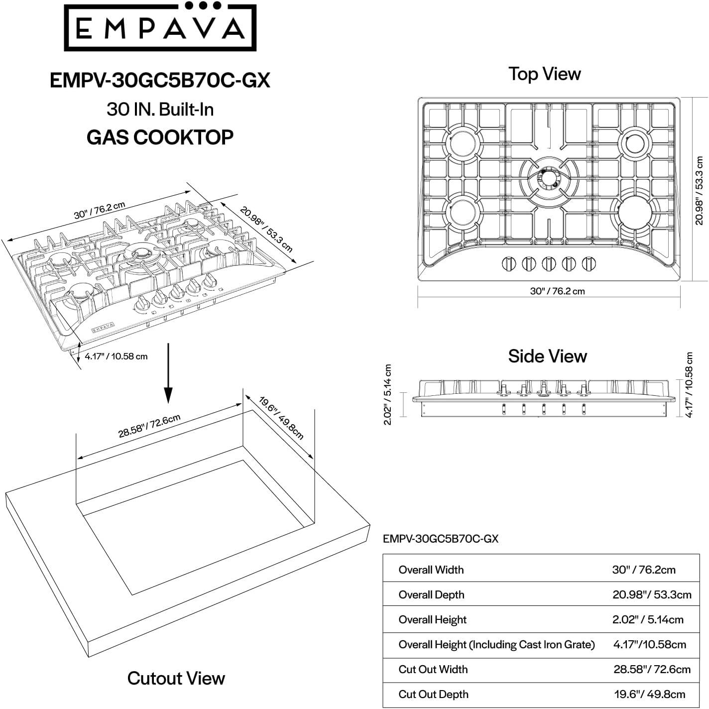 Streamlined Installation with Perfect Fit – Product dimensions: 30.0″ W x 21.0″ D x 3.78″ H. Cutout dimensions: 28.58″ W x 19.61″ D. Comes with pre-installed 120V power cord and LPG nozzles.