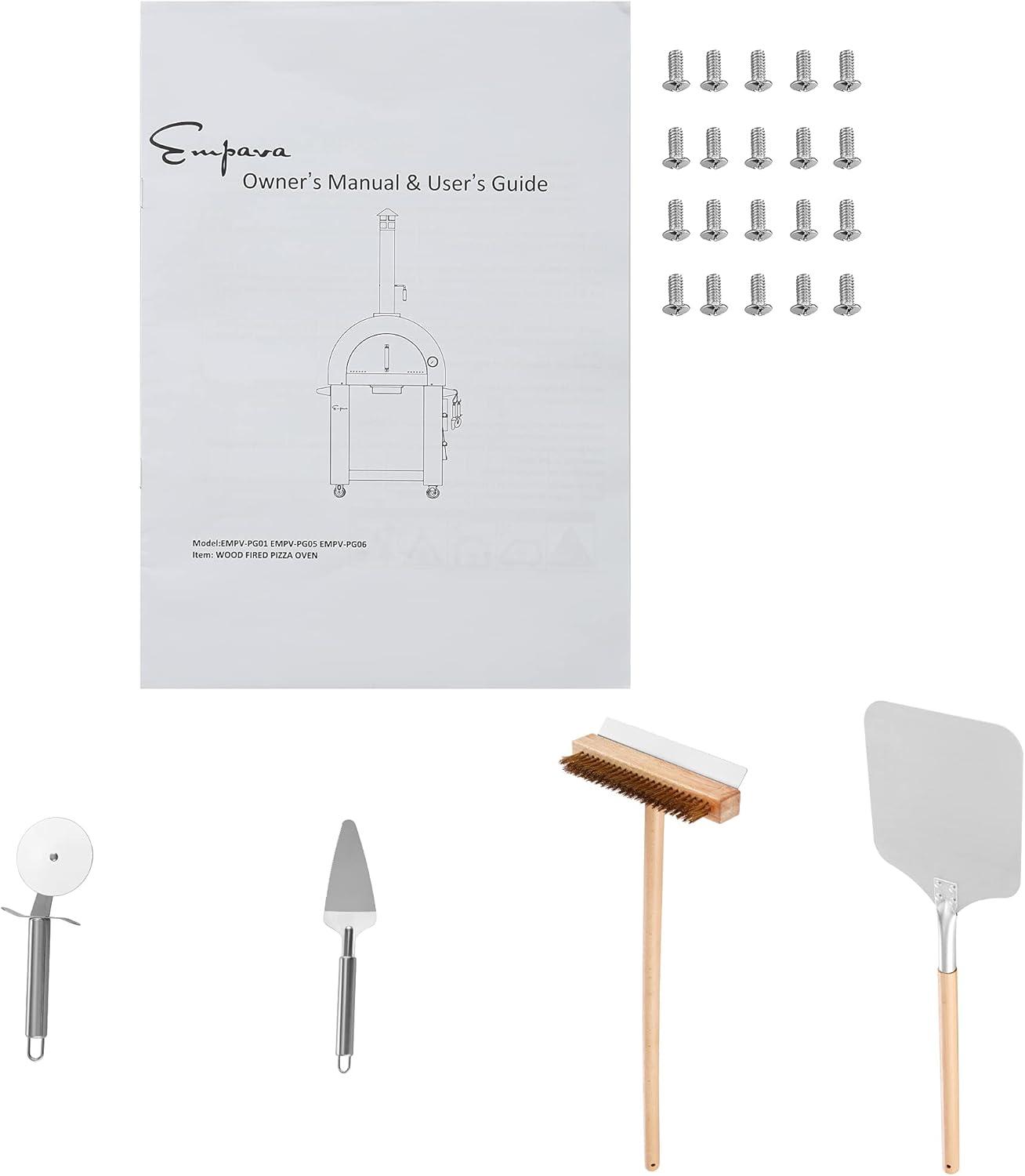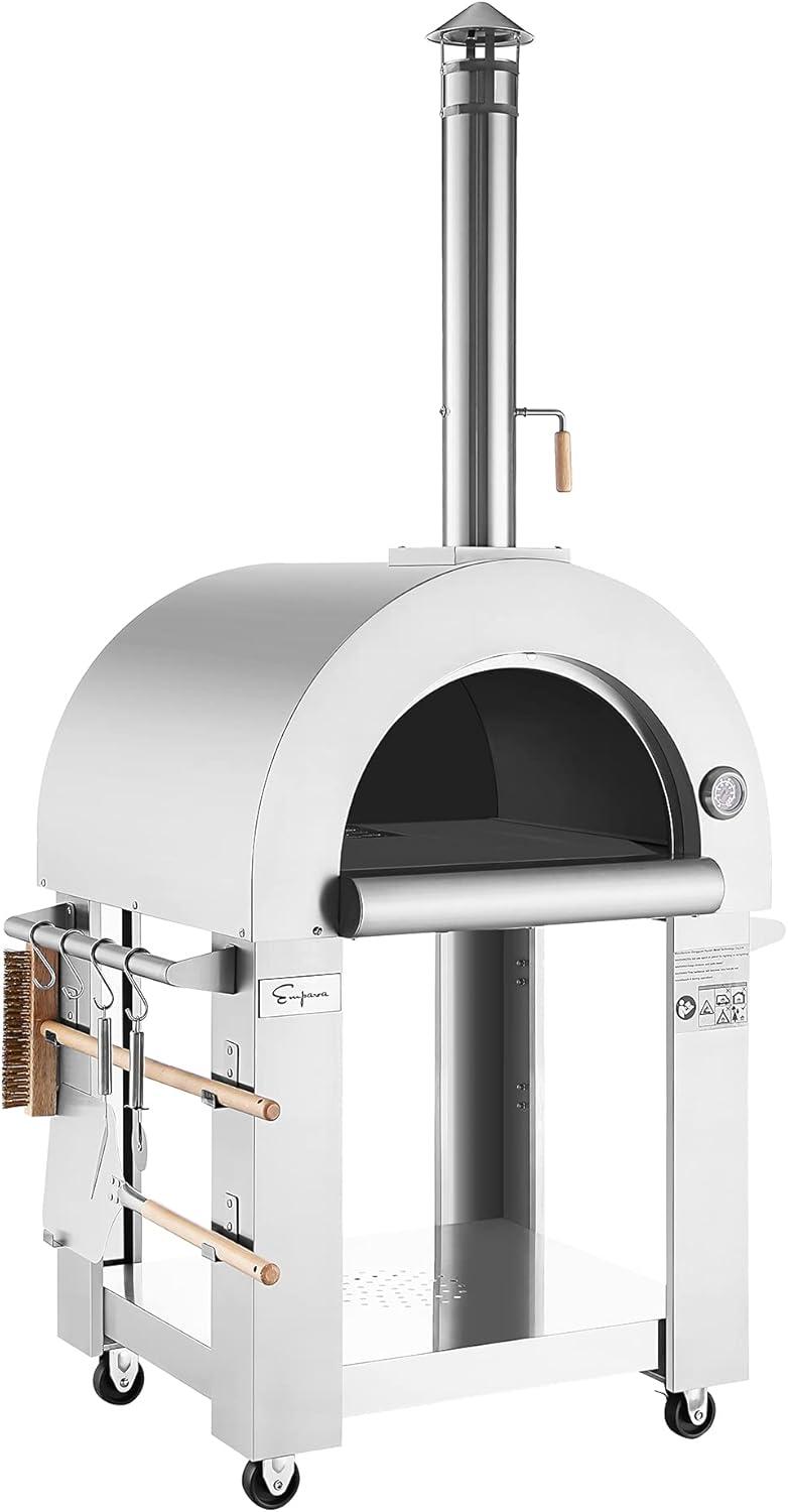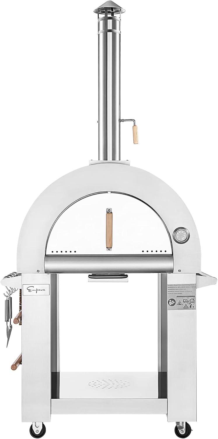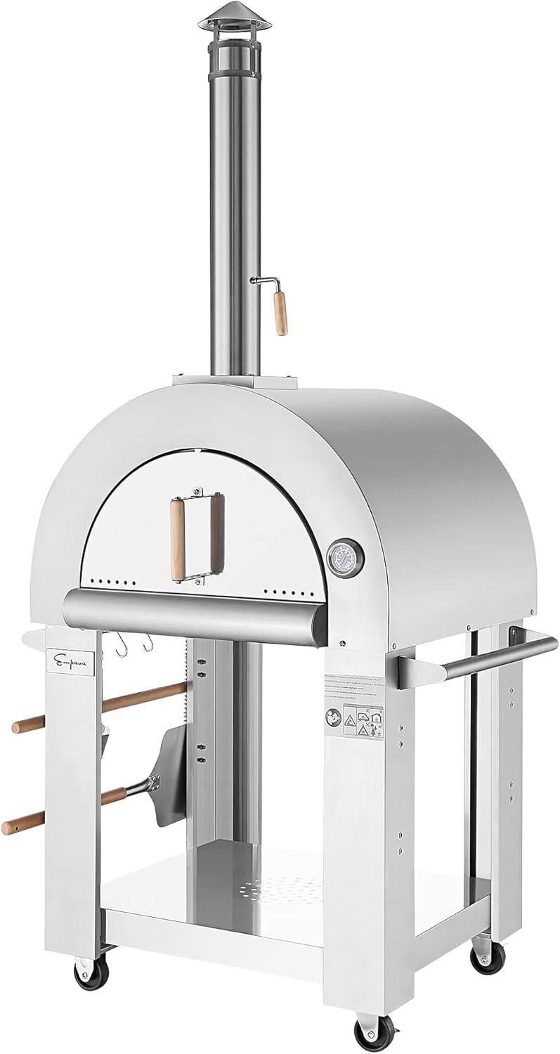 Empava 32.5" Wood Fired Pizza Oven Grill with Stand and Wheels, for Outdoor Camping, Backyard, Garden,Patio in Stainless Steel, Red(PG01)