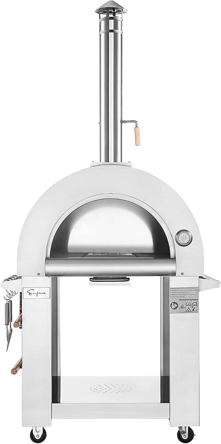 imageEmpava 325quot Wood Fired Pizza Oven Grill with Stand and Wheels for Outdoor Camping Backyard GardenPatio in Stainless Steel RedPG02