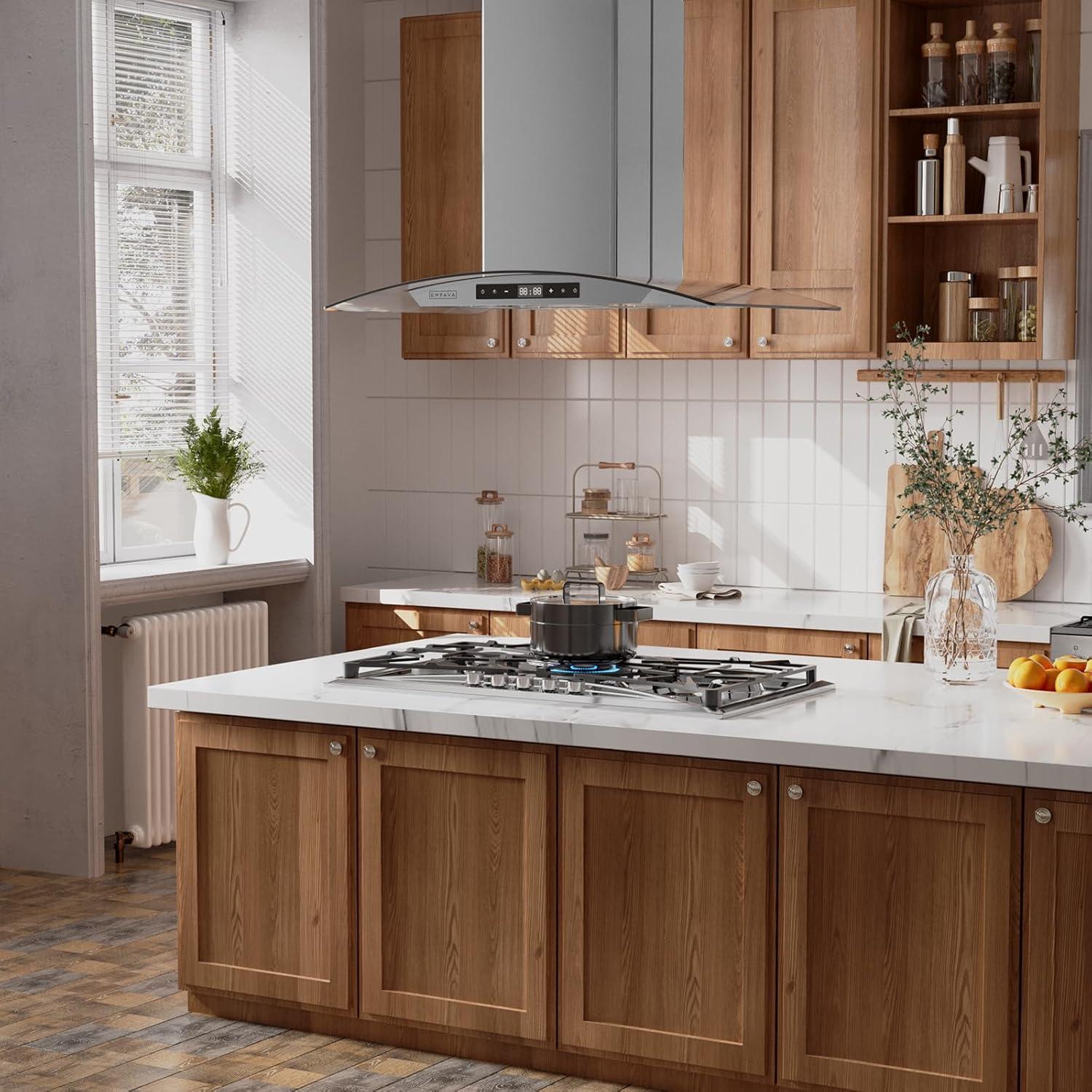 Empava recessed gas cooktop offers you the flexibility you need to make all your favorite dishes with precision and flair 4 different versatile burner size with a Dual Ring 12000-BTU burner, a 10000-BTU burner, double 6500-BTU burner and 4000-BTU burner distribute even heat for simmer, boil, stir-frying, steaming, melting or even caramelizing!Now you are cooking! Enjoy all these features even more by knowing this cooktop. Product Dimensions: 36.02 in. L x 20.67 in. W x 2.1 in. H, Cutout Dimensions: 34.68 in. L x 19.33 in. W. Pre-installed 110v power cord, Natural Gas Regulator and LPG Nozzles included. (LPG Conversion Kit included)