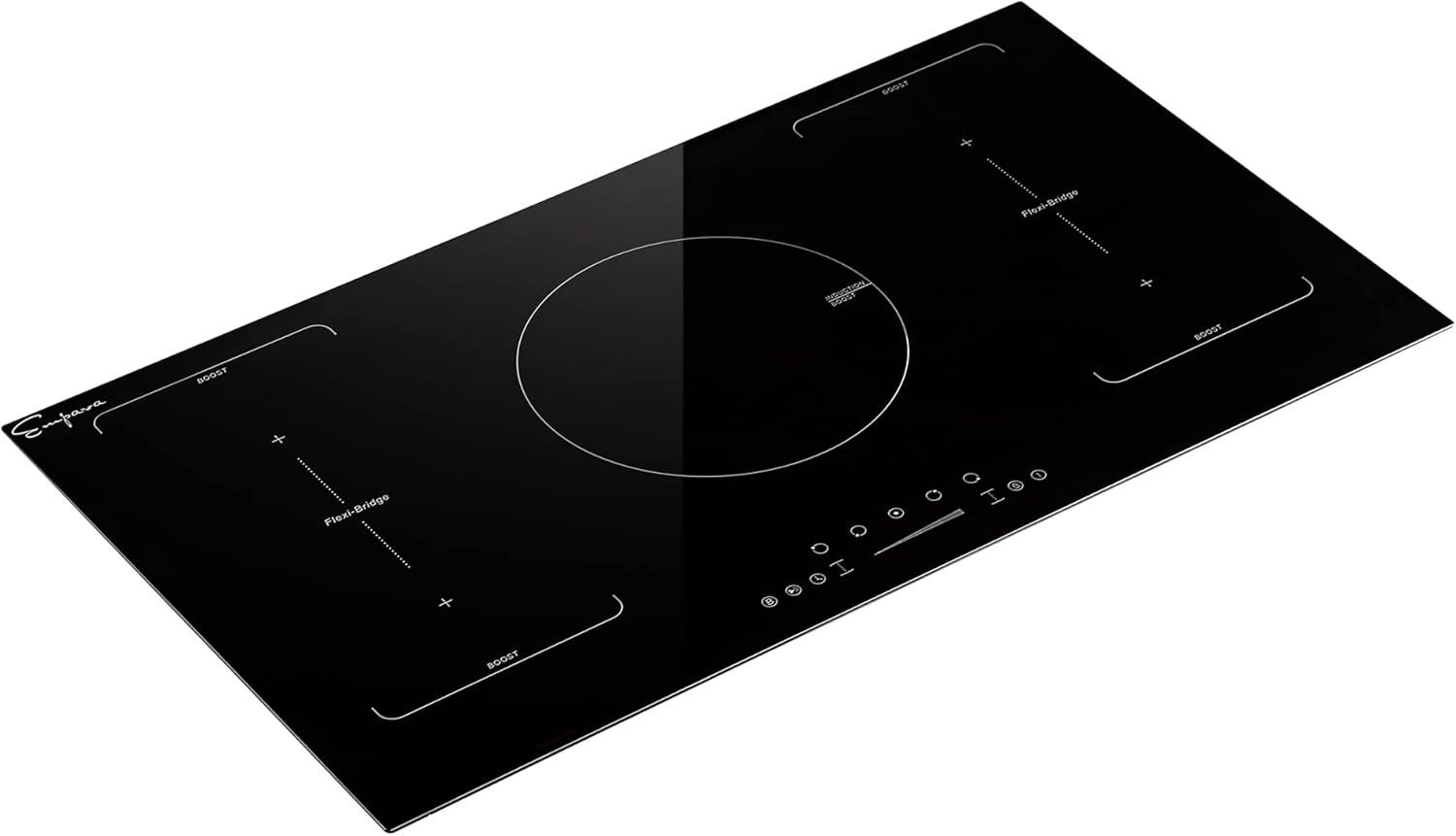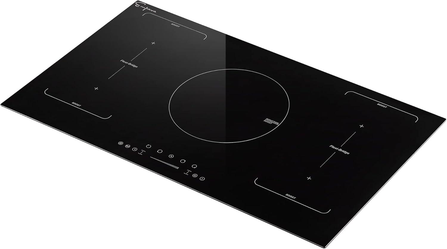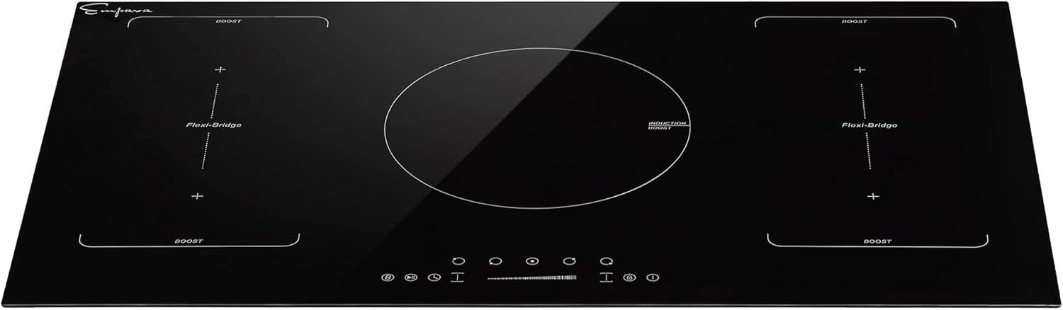 This Empava Induction cooktop features an 11 in. center element up to 3,000W, Two 7.48 in. burners up to 2,000 W each, Two 7.48 in. burners up to 2,600 W each in Power Boost Mode up to 5 minutes. Compatible to install above any Empava 24/30 in. under-counter single wall oven.