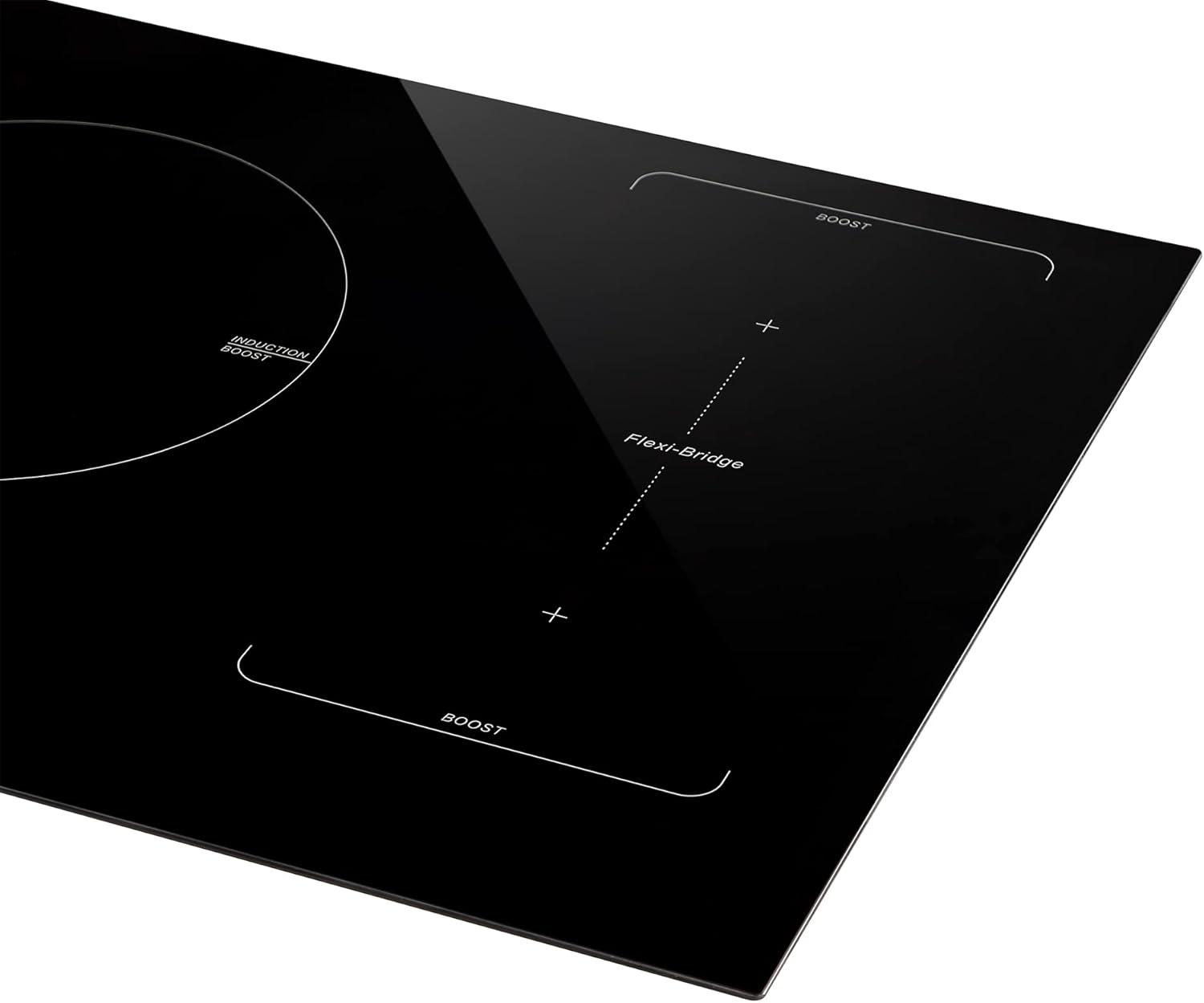 Flush with the countertop and are designed for a sleek built-in appearance. The reasonable cooking zone layout make sure there's enough space between burners to use several pots at once without pushing one off-center. The flawless vitro-Chinese glass surface withstands intense heat without cracking or chipping.