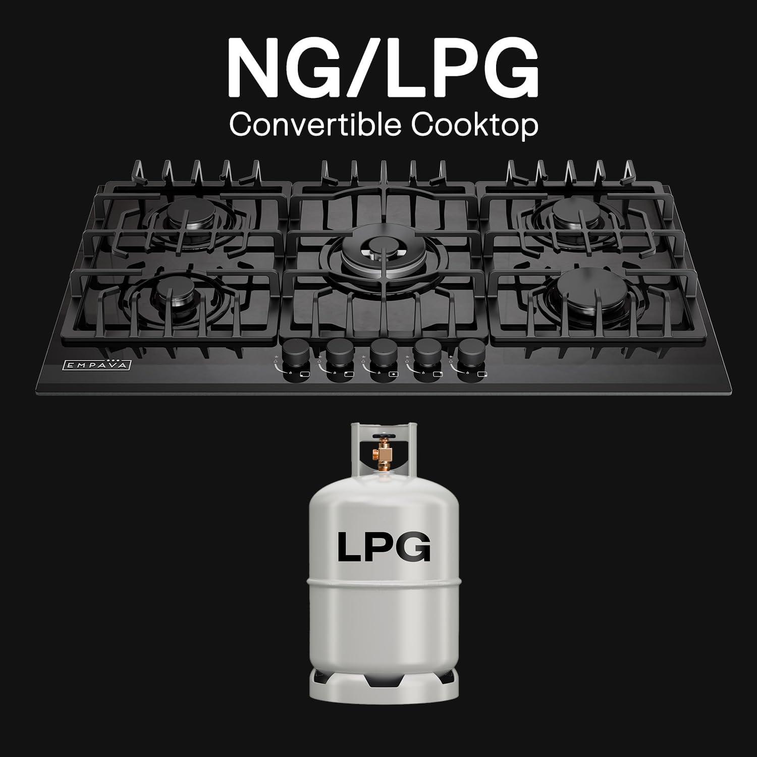 LPG/NG Convertible (Both Nozzles Included) delivers the same maximum BTU power to propane and natural gas cooktops – Works manually w/o electricity. Capable for multi-purpose such as RVs, light cooking family, small kitchen and outdoor use, etc. Compatible to install above any Empava 24/30 in. under-counter single wall oven.