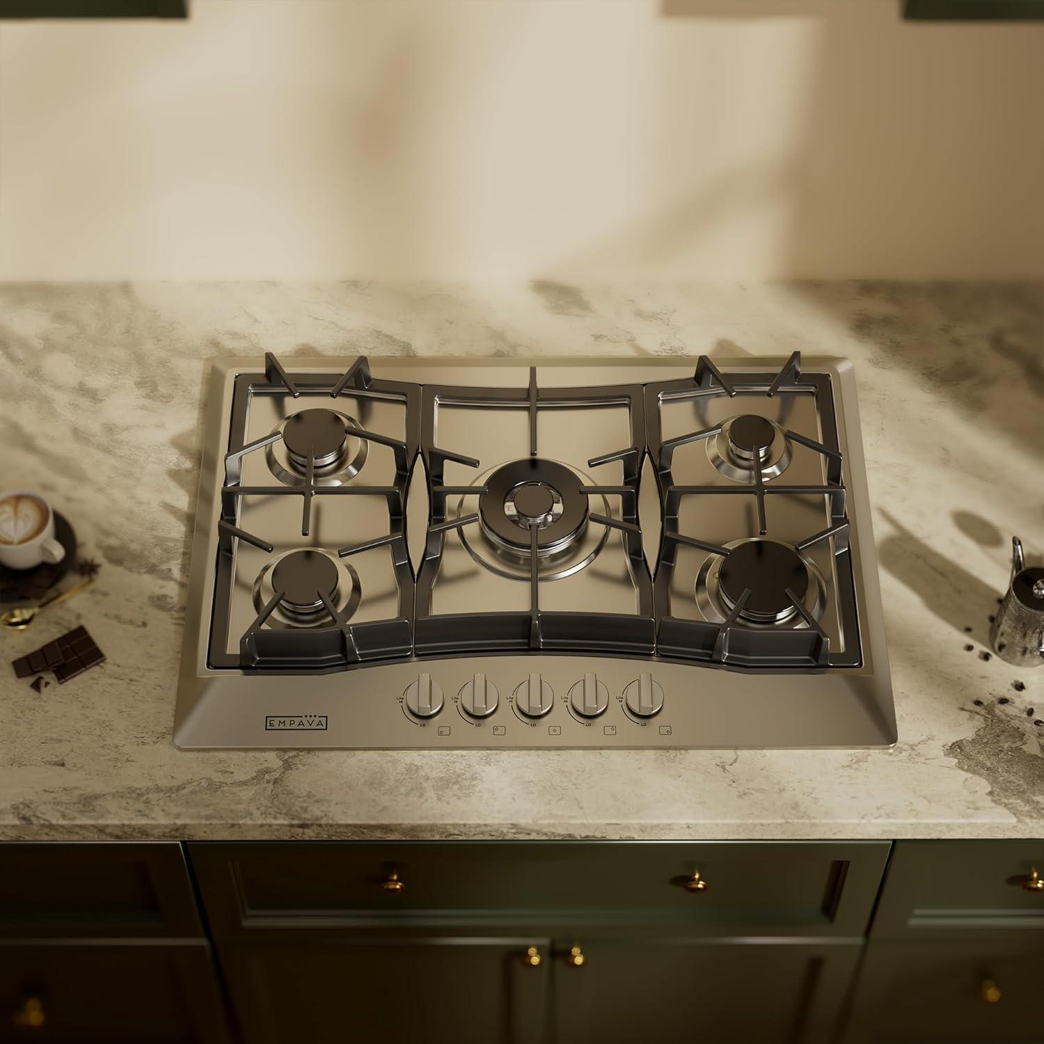 Empava 36-Inch Gas Stove Cooktop with 5 Italy SABAF Sealed Burner NG/LPG Convertible in Stainless Steel, 36 Inch(24 Inch)