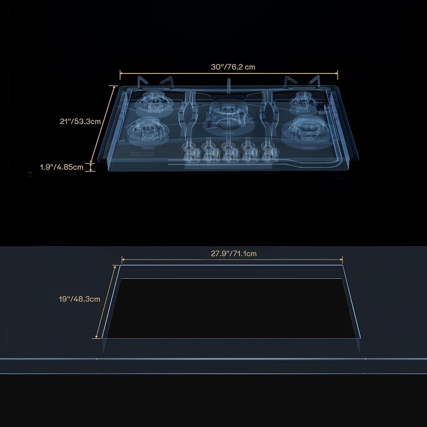 Top-Notch Quality with Italy SABAF Burners: This cooktop is equipped with five premium SABAF burners, crafted in Italy, renowned for their exceptional durability and long-lasting performance. These burners are designed to deliver consistent, reliable heat output, ensuring that your cooktop remains a trusted tool in your kitchen for years to come.