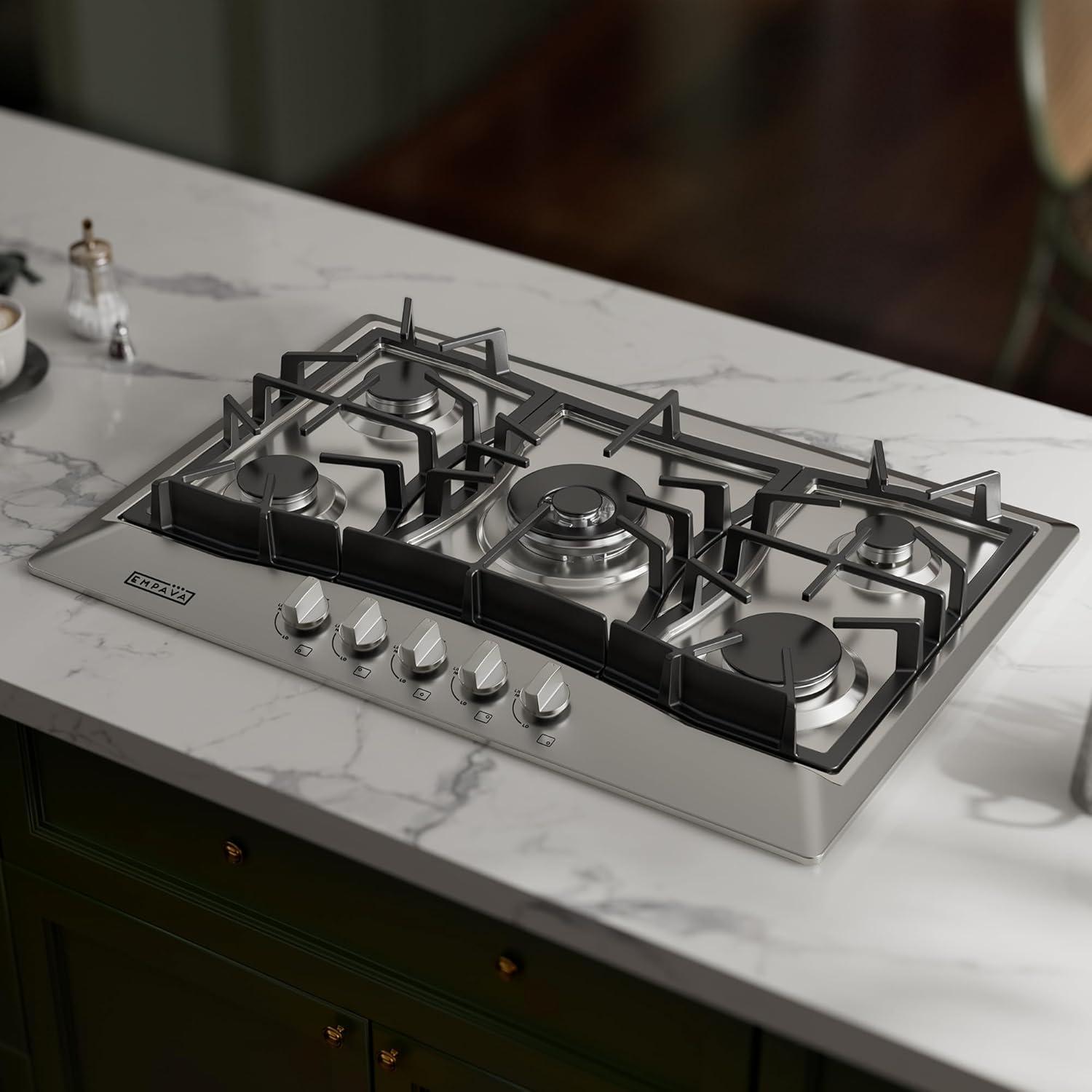 imageEmpava 36quot Recessed Gas Stove Cooktop with 5 Italy SABAF Sealed Burner NGLPG Convertible in Stainless Steel30GC21