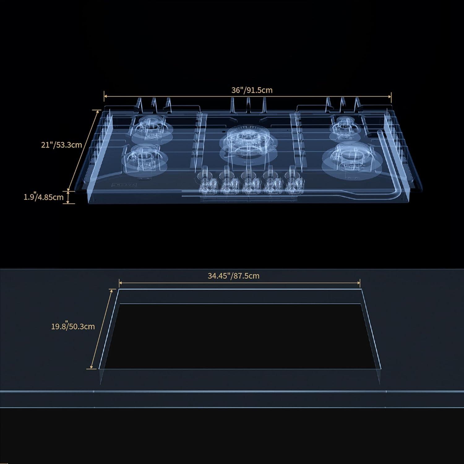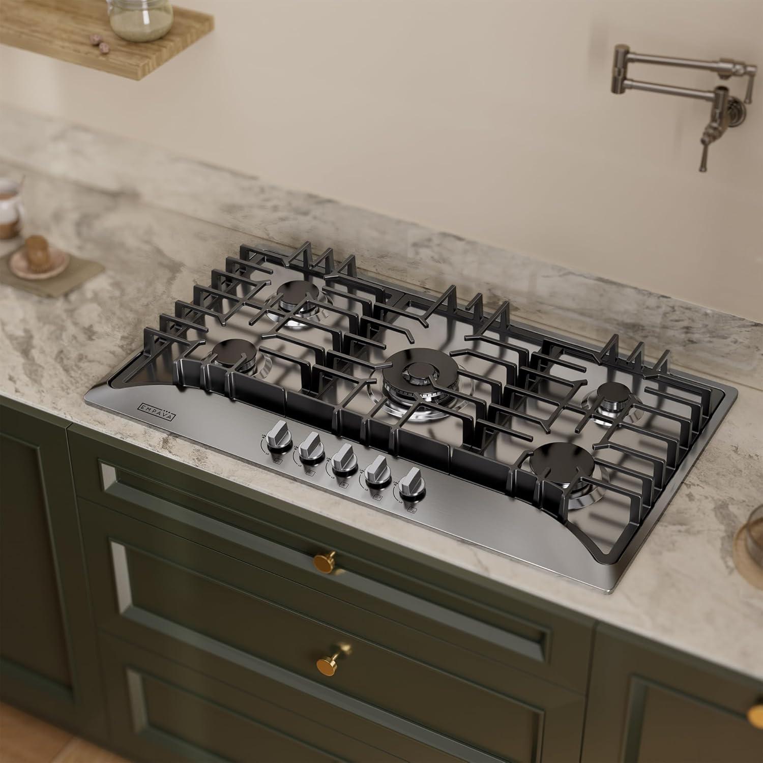 Empava 36″ Recessed Gas Stove Cooktop with 5 Italy SABAF Sealed Burner NG/LPG Convertible in Stainless Steel(36GC23)