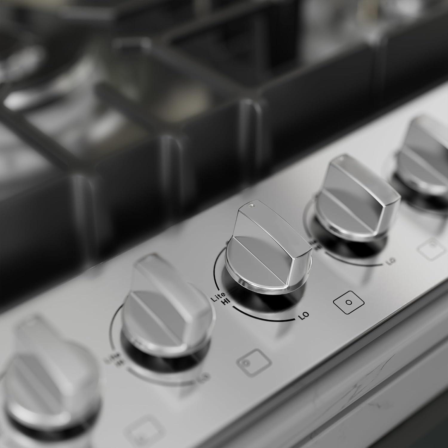 The durable knobs and laser cut full-width edge-to-edge heavy cast iron grates can be cleaned in the dishwasher for hassle-free, effortless cleaning and maintenance to enhance the premium look.