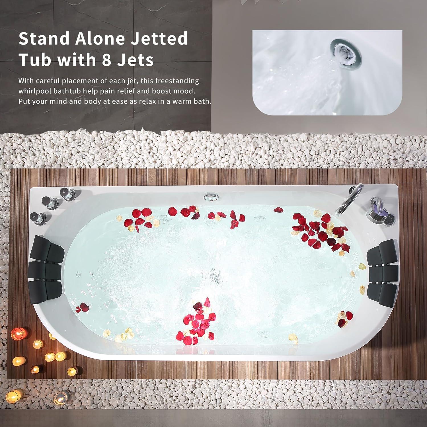 Empava 59 in. Acrylic Freestanding Tub Hydromassage Gracefully Oval Shaped Whirlpool 8 Water Jets Soaking SPA, Double-Ended Massage Bathtub with Two Black Pillow(59 Inch-old)