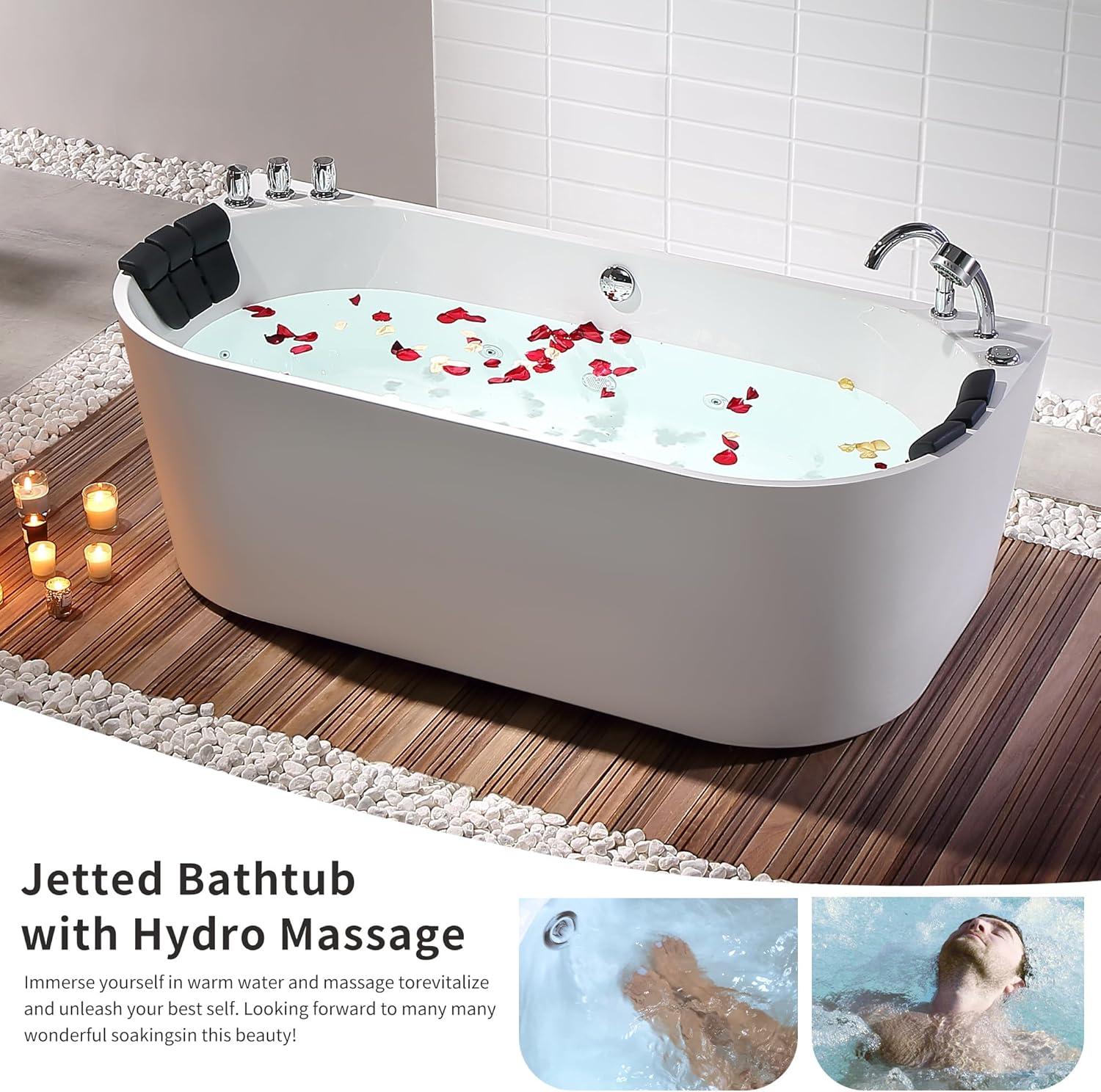 imageEmpava 59 in Acrylic Freestanding Tub Hydromassage Gracefully Oval Shaped Whirlpool 8 Water Jets Soaking SPA DoubleEnded Massage Bathtub with Two Black Pillow59 Inchold