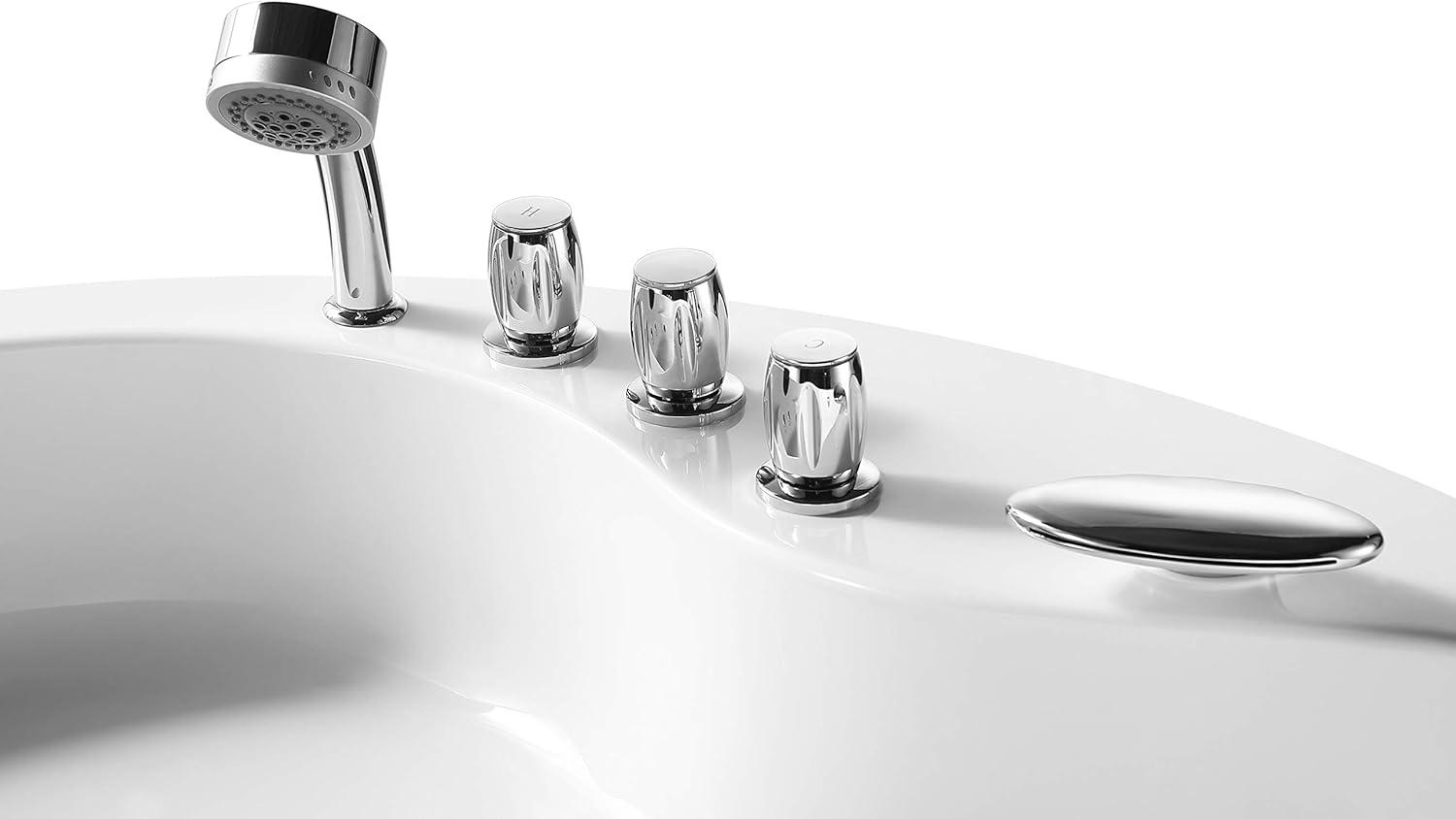 [EASY TO INSTALL] With the polished chrome drain, waterfall faucet, knobs, 45″ length showerhead, pillow and jets. The Empava whirlpool tub accessories are pre-drilled and pre-installed. Perfect for any ages, any genders to enjoy SPA-Like comfort in own home.