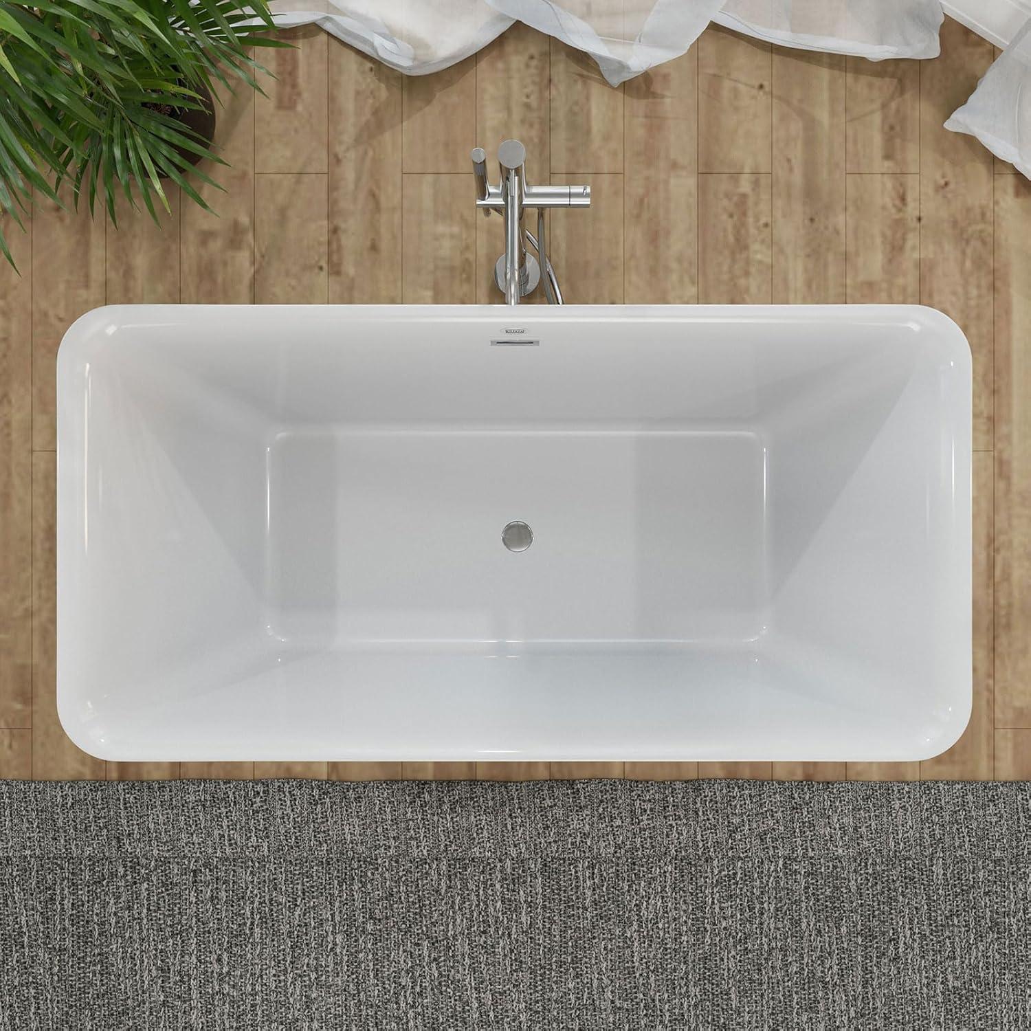 Come home and relax in your luxurious freestanding bathtub by Empava's. From the serenity collection emerges the ergonomic pure-scape freestanding bathtub by Empava's. Its design is as comfortable as it is stylish. The contemporary design and defined lines will complement any bathroom decor and make the room seem more spacious. The pure-scape stand alone tub is ergonomically engineered and will comfortably hold your body, so you can soak in peaceful tranquility. Empava's uses 100% white glossy acrylic (never any paint) reinforced with fiberglass in its pure-scape bathtub to ensure that the color is consistent throughout and never fades or loses its brilliance over time. Stand alone bathtub features / specifications: , 59″ Long x 29. 52″ Wide x 22. 83″ Deep and an effective bathtub capacity of 56 gallons. , Adjustable metal feet under tub for stability. , Chrome overflow and pop up drain. , surface with high gloss white finish. cup certified. , Premium quality acrylic construction reinforced with fiberglass for strength and durability. , Non-porous surface for easy cleaning. , Easy installation. , 1 person bathing. , Brushed Nickel overflowithdrain available upon request (DIY replacement only). , 3 years . Empava's bathtubs are as pleasing to the eye as they are comfortable to soak in. World-class modern designs and ergonomic features are incorporated into all of Empava's' s luxury tubs. From the finest selection of raw materials to the contemporary design, Empava's bathtubs bring innovation and durability to create some of the highest quality, visually striking bathtubs in the world. Add the Empava's modern freestanding bathtub to your cart today .
