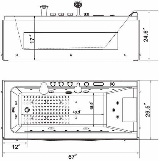Outer Dimensions: 67 in. L x 29.5 in. W x 25.6 in. H and an effective bathtub capacity of 63 Gallons. UL Certified Motor. Take the time you deserve to relax and de-stress with the therapeutic benefits of the Acrylic Rectangular Bathtub.