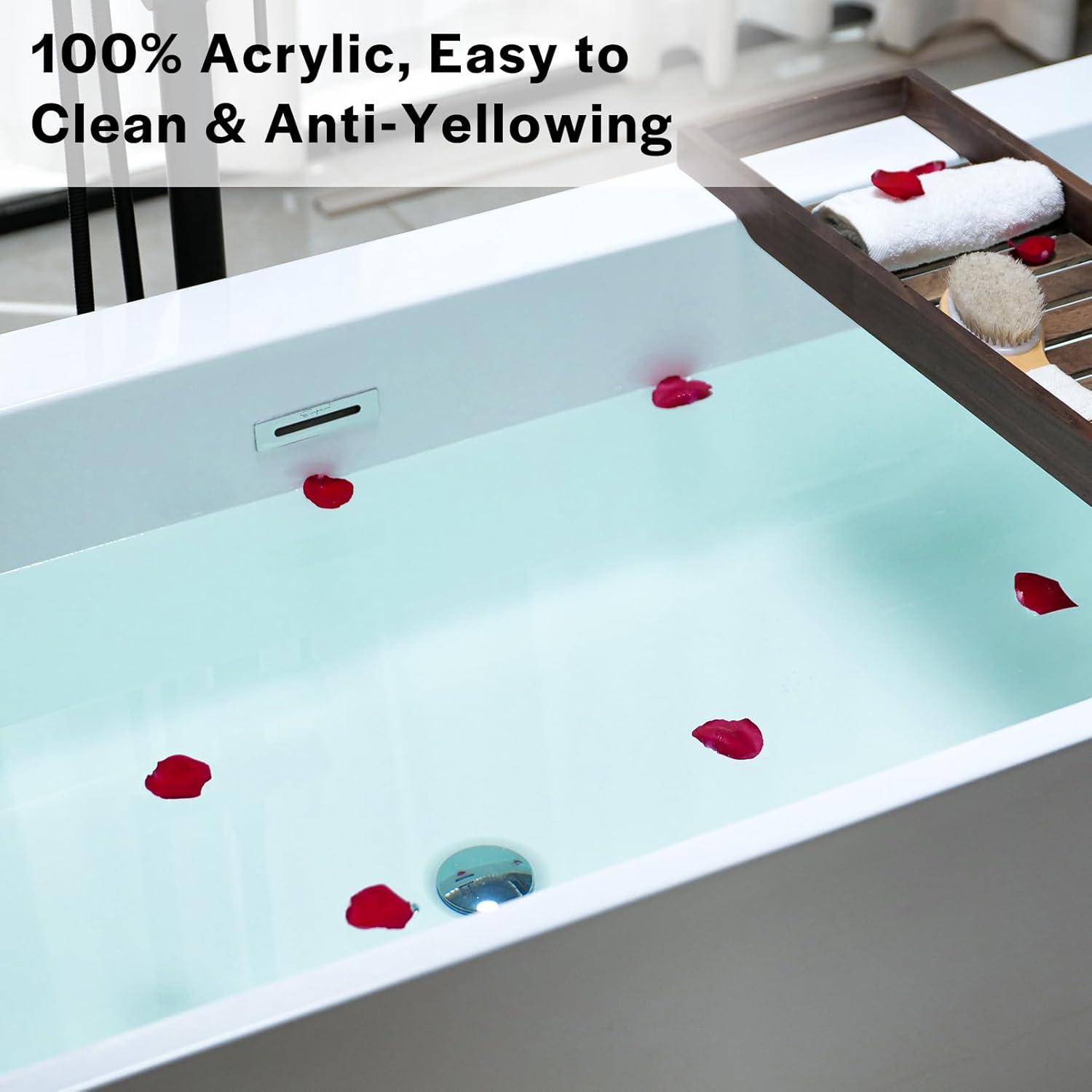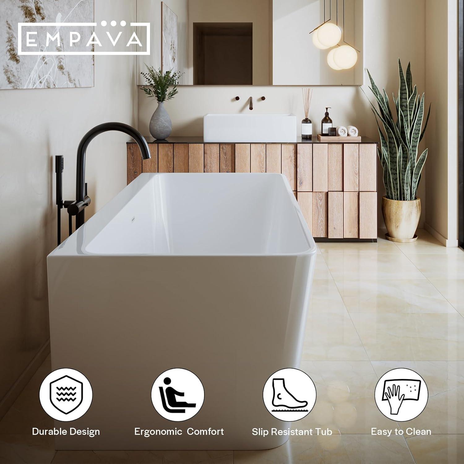 VERSITILE DESIGN – The Empava Bathtub can be paired with any tub filler (not included) depending on the style of bathroom you desire. Its modern curved design will match any décor and create a striking focal point in your bathroom