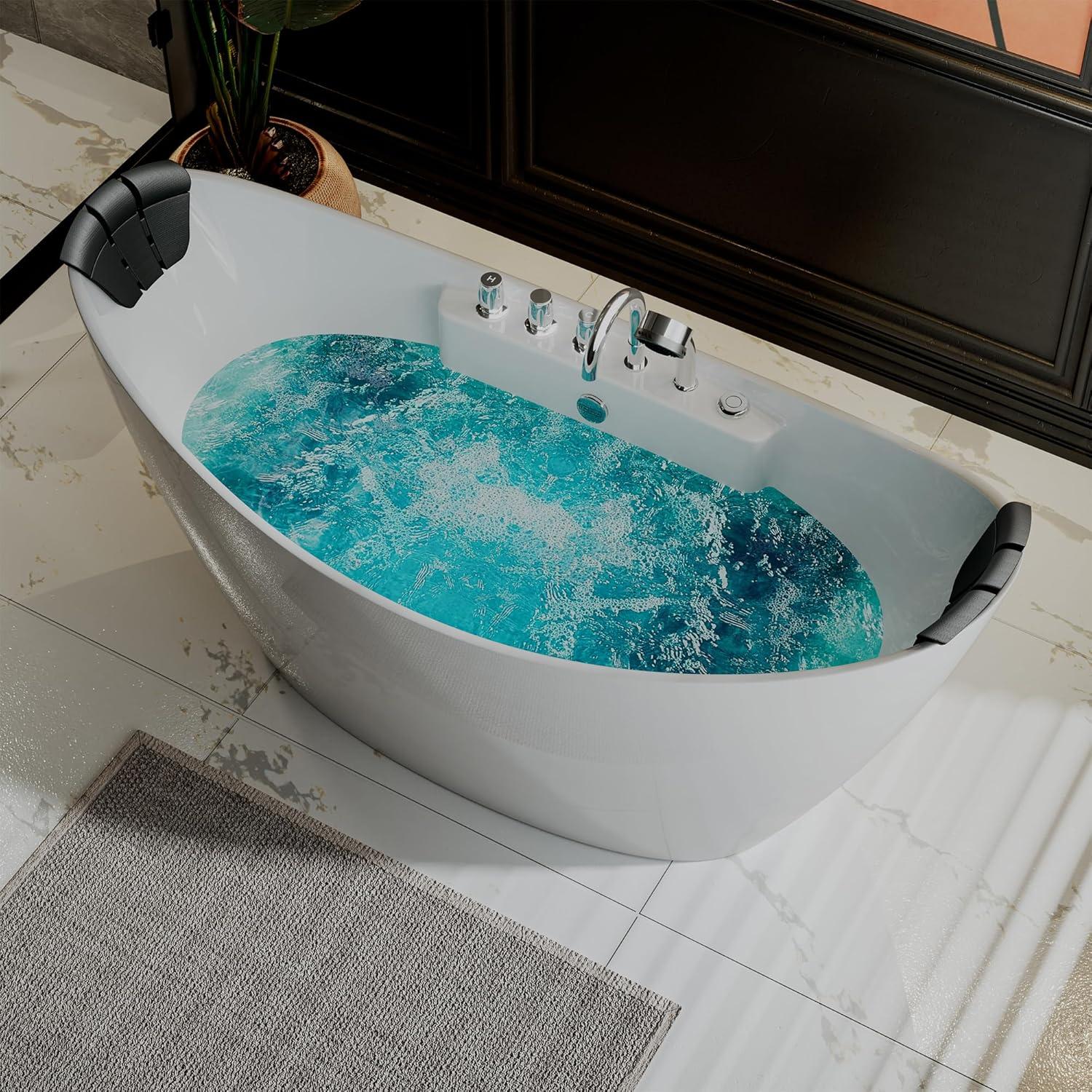 Comfortable Freestanding Whirlpool Bathtub: Enjoy the same bathing experience from any direction with its symmetrical design. The 4 nozzles and waterproof pillows are strategically placed to provide consistent relaxation and comfort.