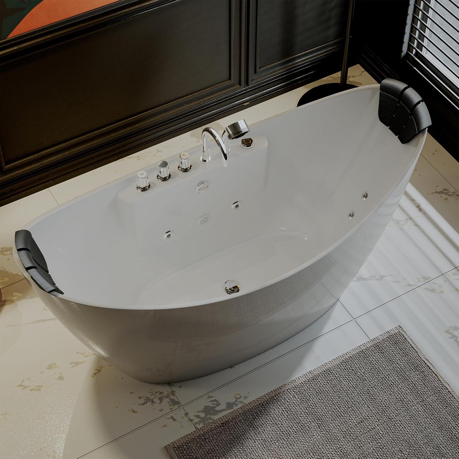 Comfy Reading Elbow Support: The boat-shaped design of this 67 inch freestanding jetted tub is perfect for those who enjoy reading while bathing. It forms an angle at the elbow position, providing optimal comfort for extended reading periods.