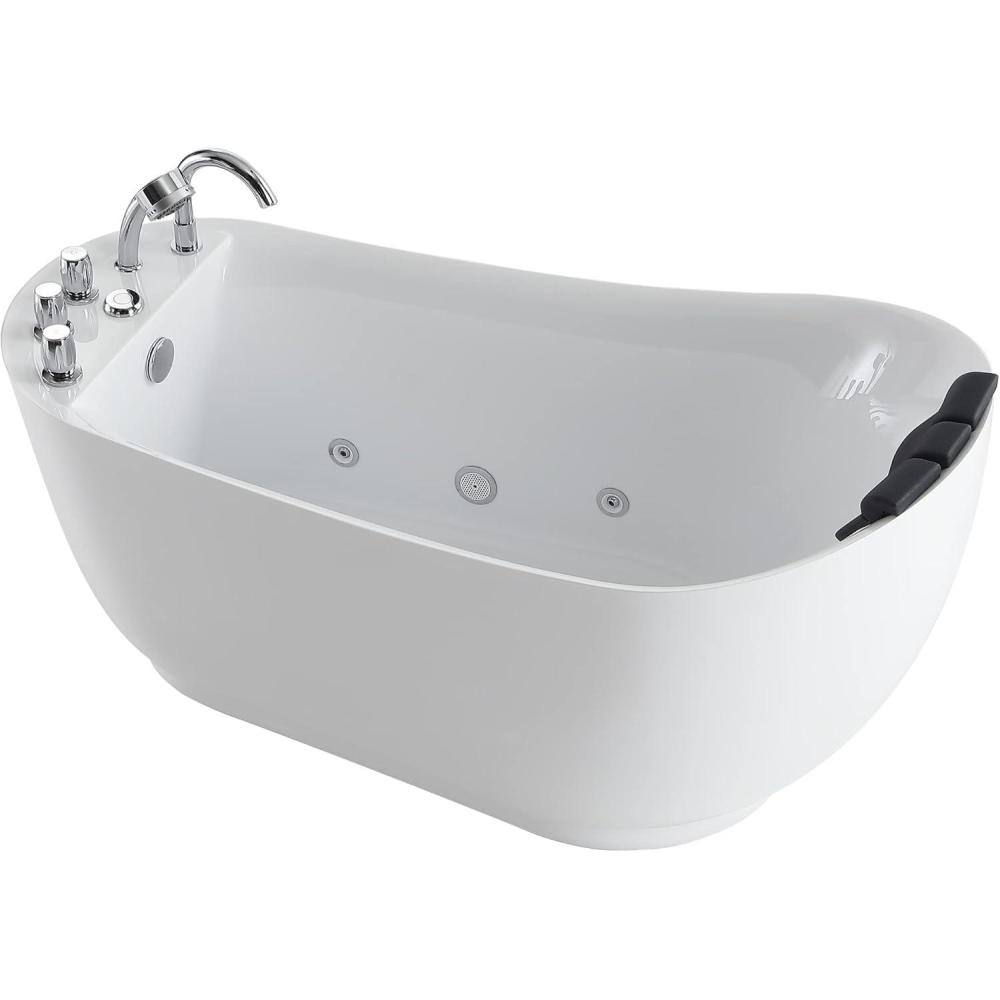 [PREMIUM QUALITY] The acrylic whirlpool tub features acrylic reinforced with fiberglass for long-lasting durability and a contemporary stand-alone design that complements any bathroom décor.Environmentally friendly material, non-toxic, non-cracking, high gloss, and durable finish. Easy to clean, and resistant to a wide range of household chemicals and cosmetic products.
