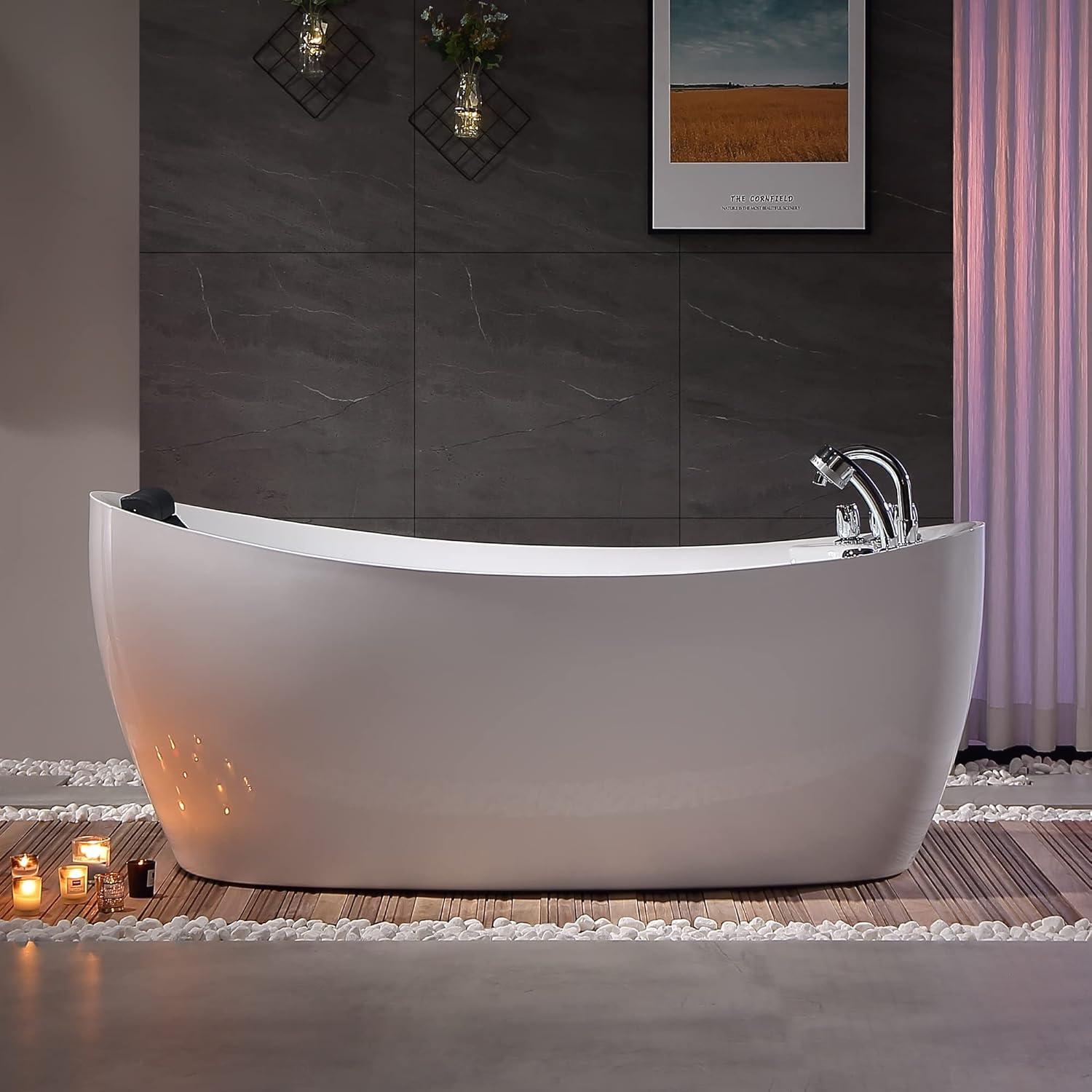 [PREMIUM QUALITY] The acrylic whirlpool tub features acrylic reinforced with fiberglass for long-lasting durability and a contemporary stand-alone design that complements any bathroom décor.Environmentally friendly material, non-toxic, non-cracking, high gloss, and durable finish. Easy to clean, and resistant to a wide range of household chemicals and cosmetic products.