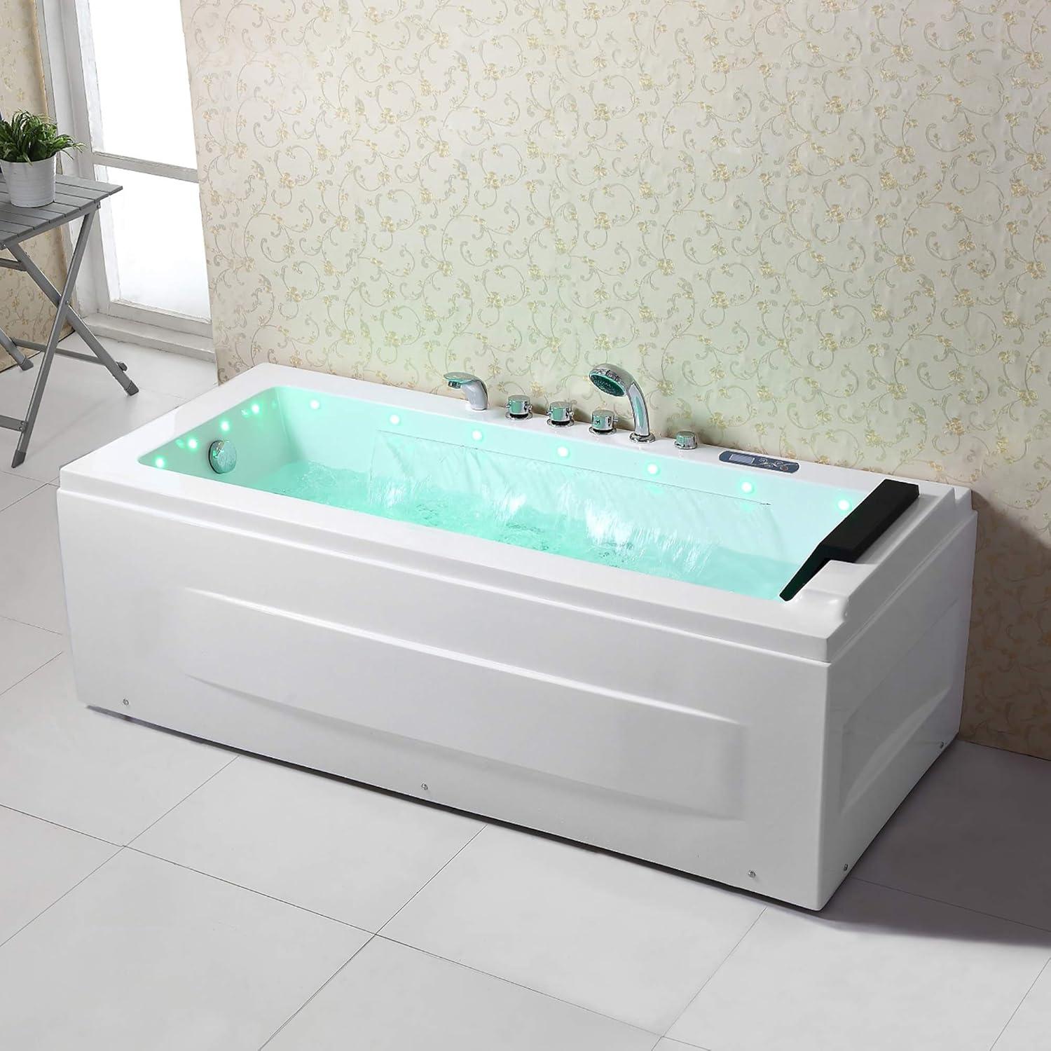 The Empava 67 in. Jetted Air Whirlpool tub is perfect for those looking for a strong deep tissue massage to soothe sore muscles and joints or to reduce stress. The 9 water jets and 8 air jets provide from the gentle, soothing bubbles to the stronger, high-pressure massage option. Its generous length gives plenty of room to stretch and relax, and the pre-installed thermostat helps maintain water temperature(96. 8℉ to 107. 6℉) to extend your experience. . Drop-in or 3-wall alcove installation for flexibility. Add the Empava Modern Tub JTX351N to your car, Sit back and enjoy the relaxing effects of the waterfall tub filler and chromatherapy lighting now.