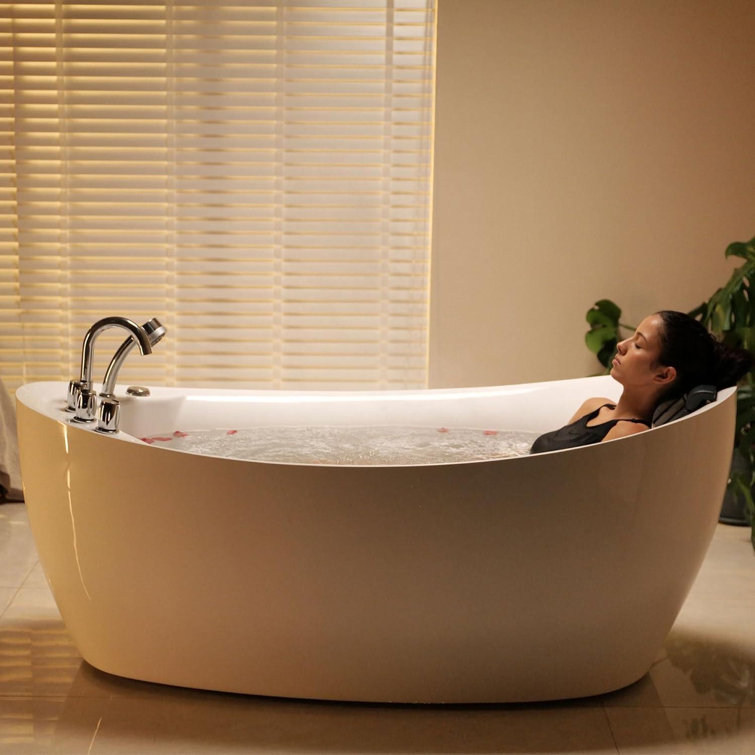 [GRACEFUL SHAPE]: Our freestanding massage bathtub offers gracefully sculpted curves that cradle your body as you settle in for a deep and restorative soak. The acrylic material allows for dynamic curvatures and crisp, hand-finished details rich with character. Gloss acrylic Whirlpool Bathtub is lightweight and easy to clean, with a high-gloss finish that guarantees our product will last for years to come.