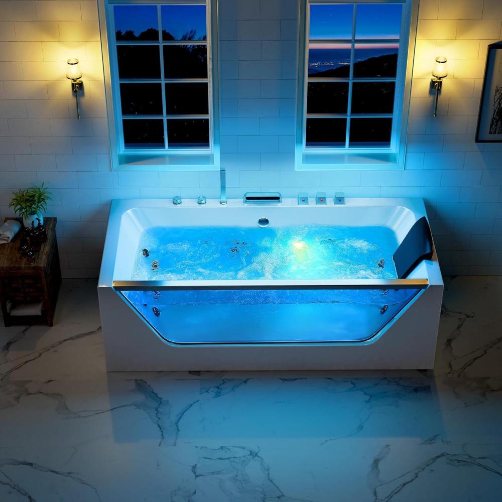 Beautiful Tub for Bathroom: We saturated the oceanic romance into our tub with the rectangular shape and side blue glass design, bodying forth the sea-relish joy in your bathroom.Empava whirlpool bathtub give your bathroom a modern chic look