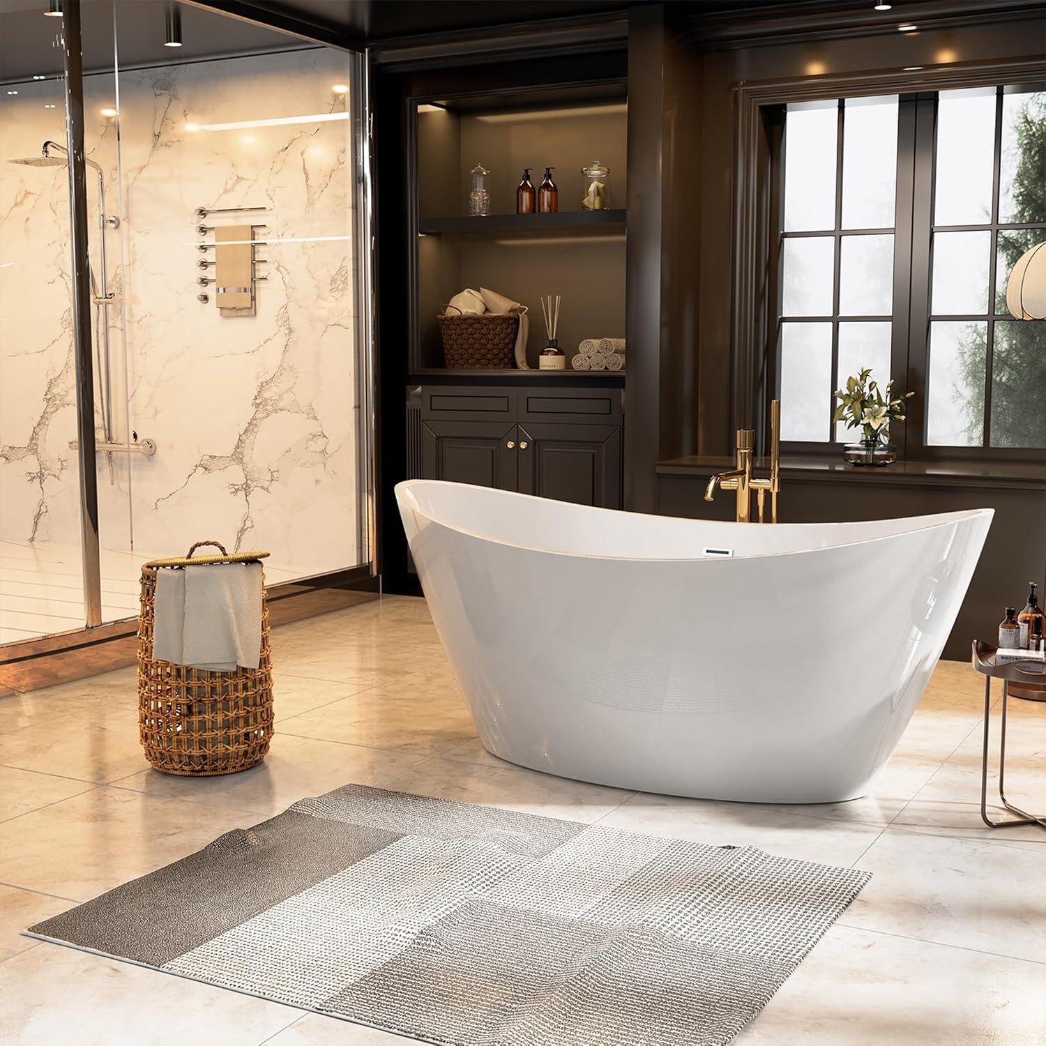 Premium Acrylic Construction: Crafted from 100% glossy white acrylic reinforced with fiberglass, this free standing tub ensures durability, long-lasting performance, and easy maintenance for years to come