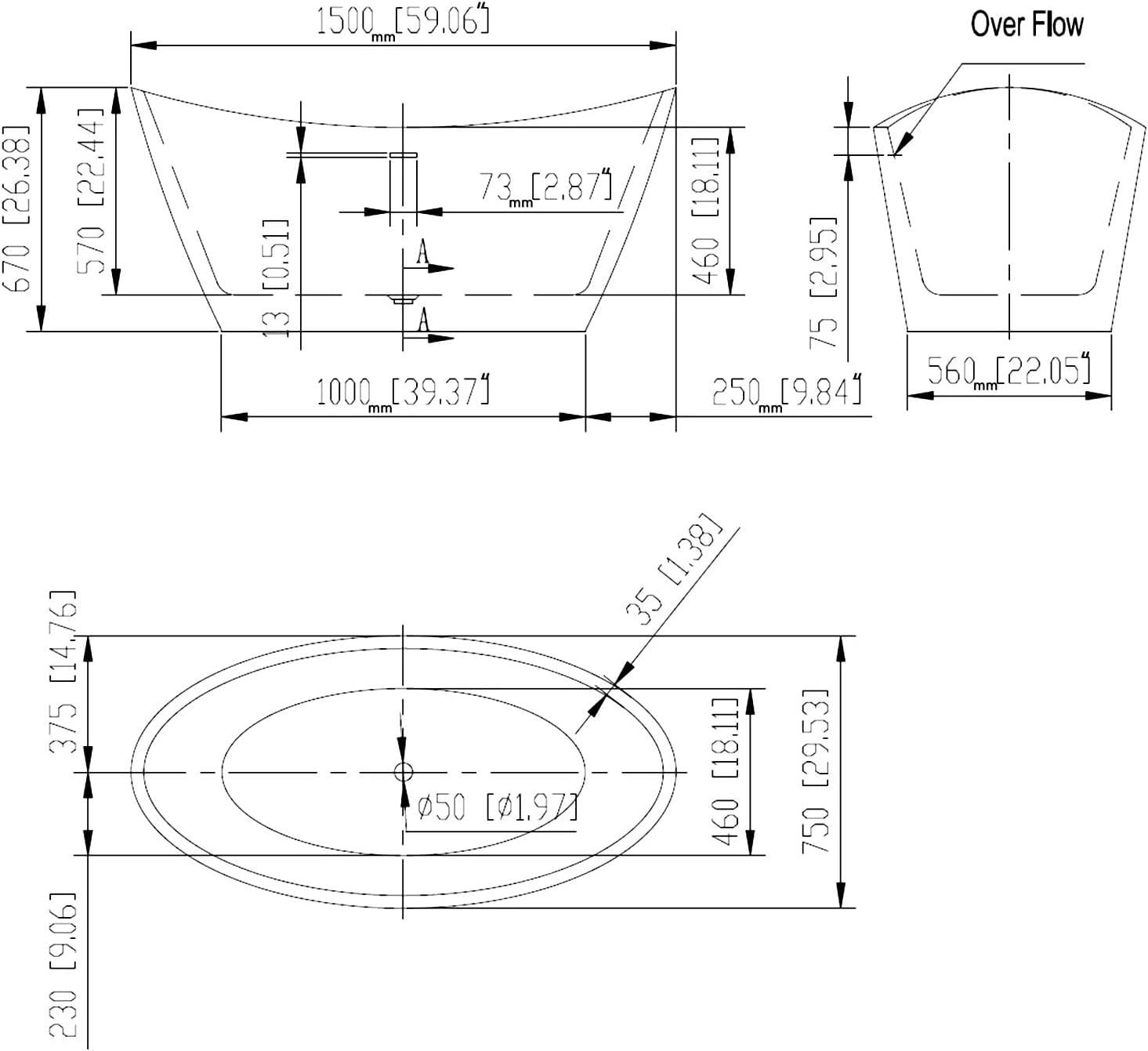 Be the first to review “Empava 69″ Freestanding Bathtub, Luxury Acrylic Soaking Tub, Modern Stand-Alone Design, Glossy White , cUPC Certified(59 Inch)”
