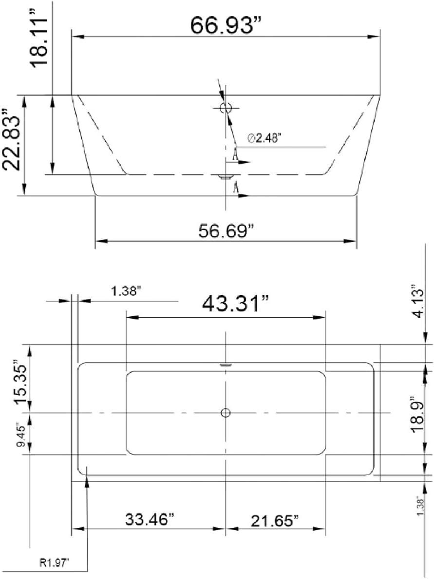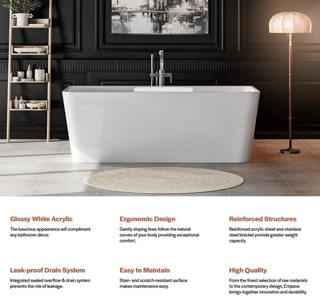 Premium Acrylic Construction: Crafted from 100% glossy white acrylic reinforced with fiberglass, this free standing tub ensures durability, long-lasting performance, and easy maintenance for years to come