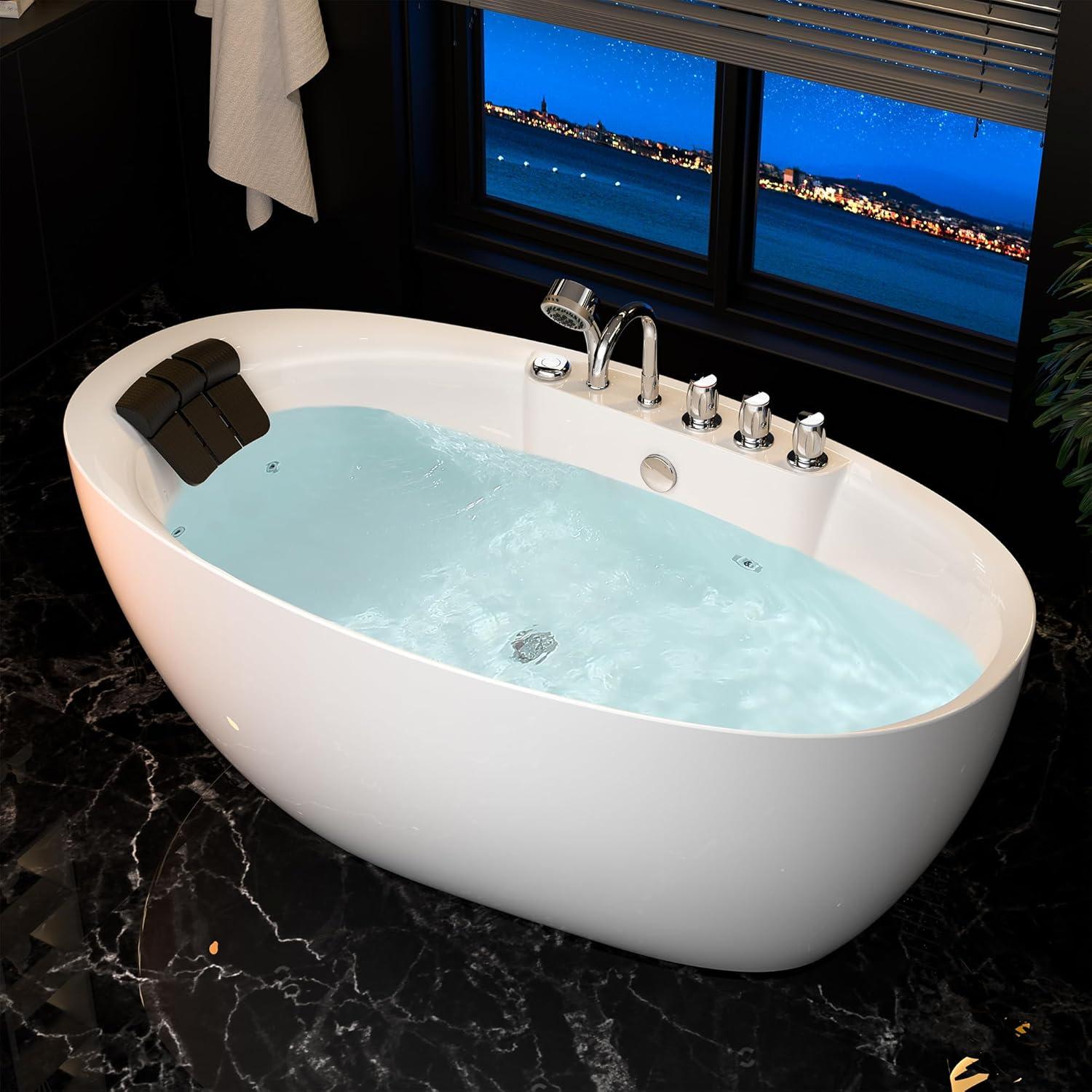 Easy to Install: The Empava 71 inch freestanding whirlpool tub has the chrome polished center drain, faucet, showerhead, overflow, knobs, jets, and headrest. The Empava 71″ freestanding jetted tub accessories are pre-drilled and pre-installed.