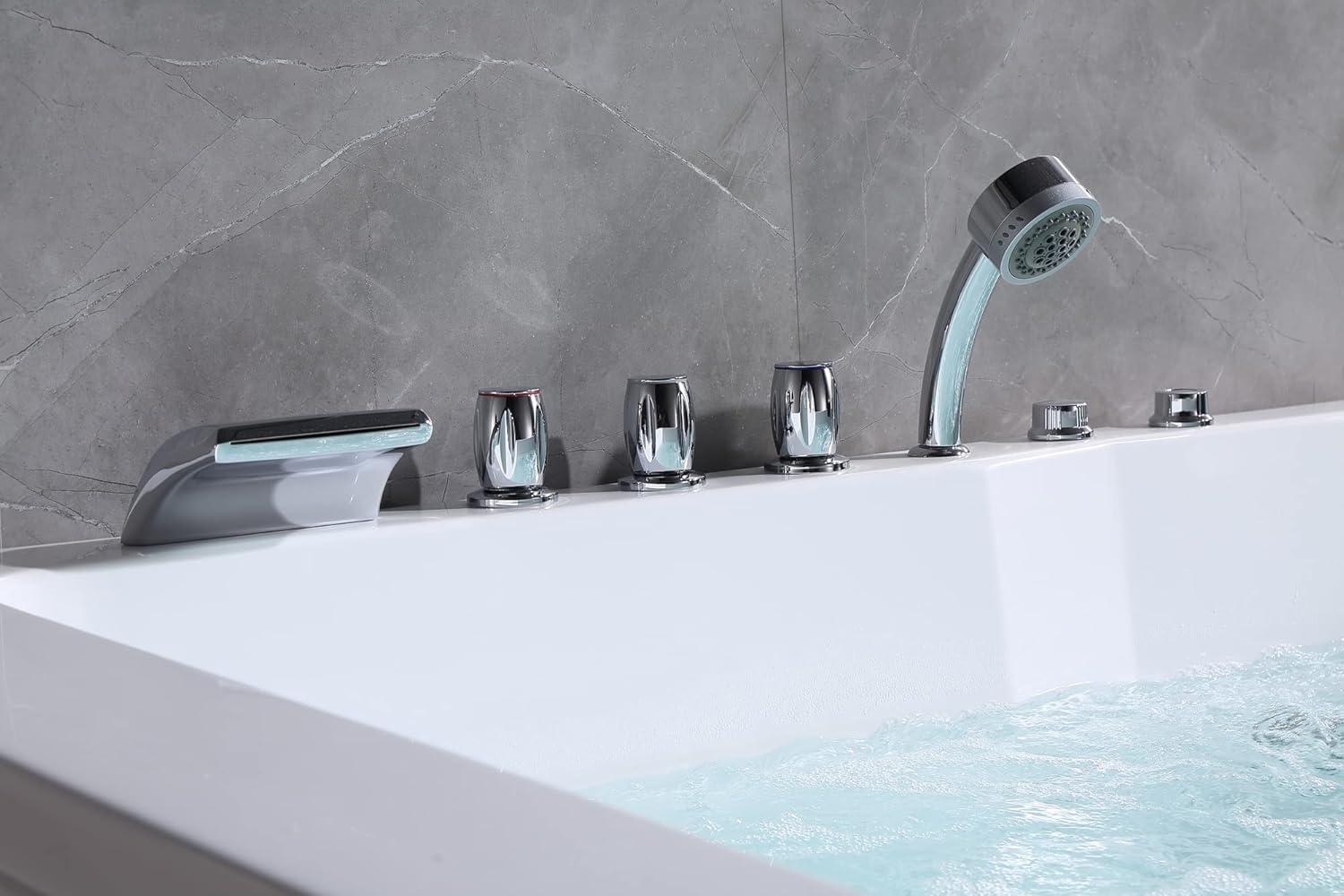 [EASY TO INSTALL] With the chrome polished drain, waterfall faucet, knobs, 45″ length showerhead, pillow and jets. The Empava whirlpool tub accessories are pre-drilled and pre-installed. Perfect for any ages, any genders to enjoy SPA-Like comfort in own home.