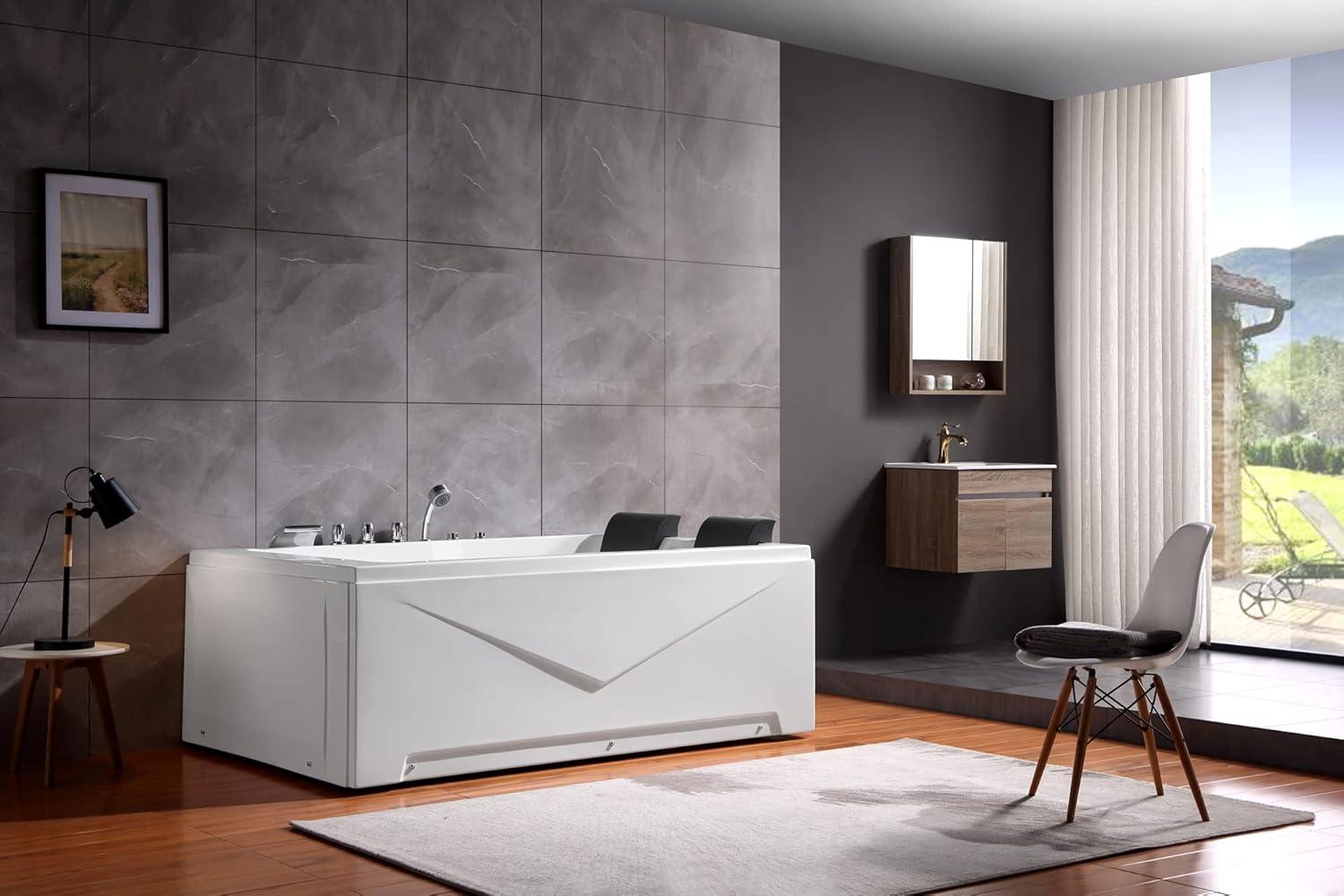 Empava 71-Inch Right Drain Rectangular Alcove Whirlpool Bathtub in White Model 2022