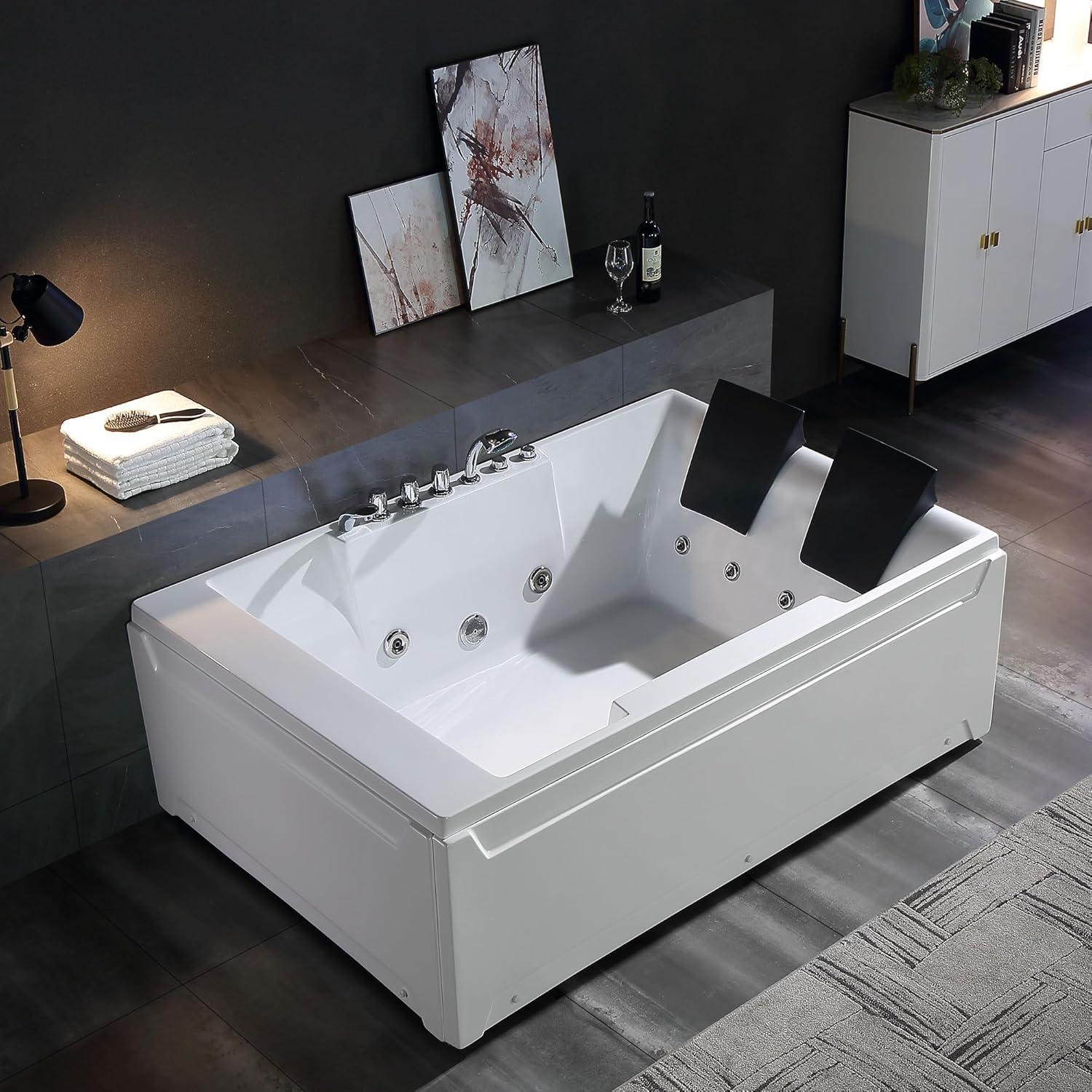 1125W Whirlpool Tub with 10 Water Jets: With careful placement of each hydromassage jet(Adjustable direction and intensity,driven by 1.2HP motor), Empava whirlpool bathtub targets key areas of the back,feet,wrists, hands and legs.