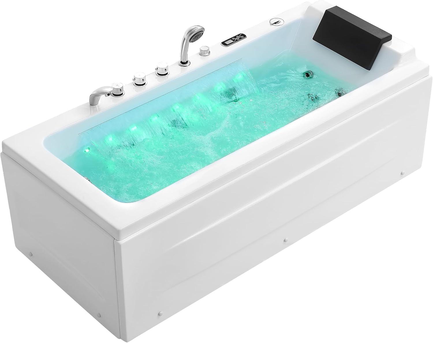 Jetted Bathtub with Waterfall: The 35″ long waterfall generates lots of negative ions which can greatly improve skin oxygen content, invite better sleep and make you look better.Get the easiest shortcut to nature and enjoy pure pleasure!